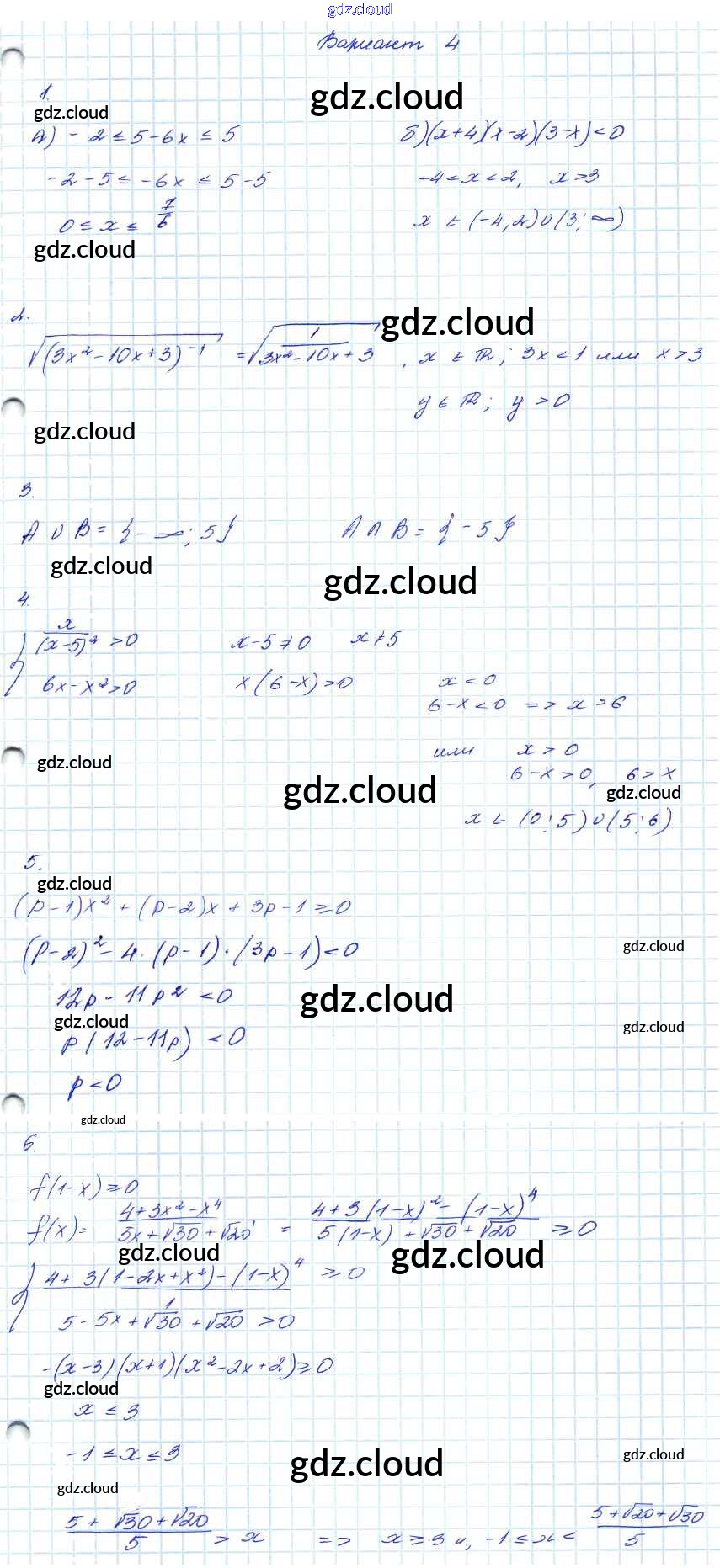 Ответ на задание 4 Контрольные работы Алгебра за 7, 8, 9 (седьмой, восьмой, девятый) класс Мордкович Углубленный уровень 2016