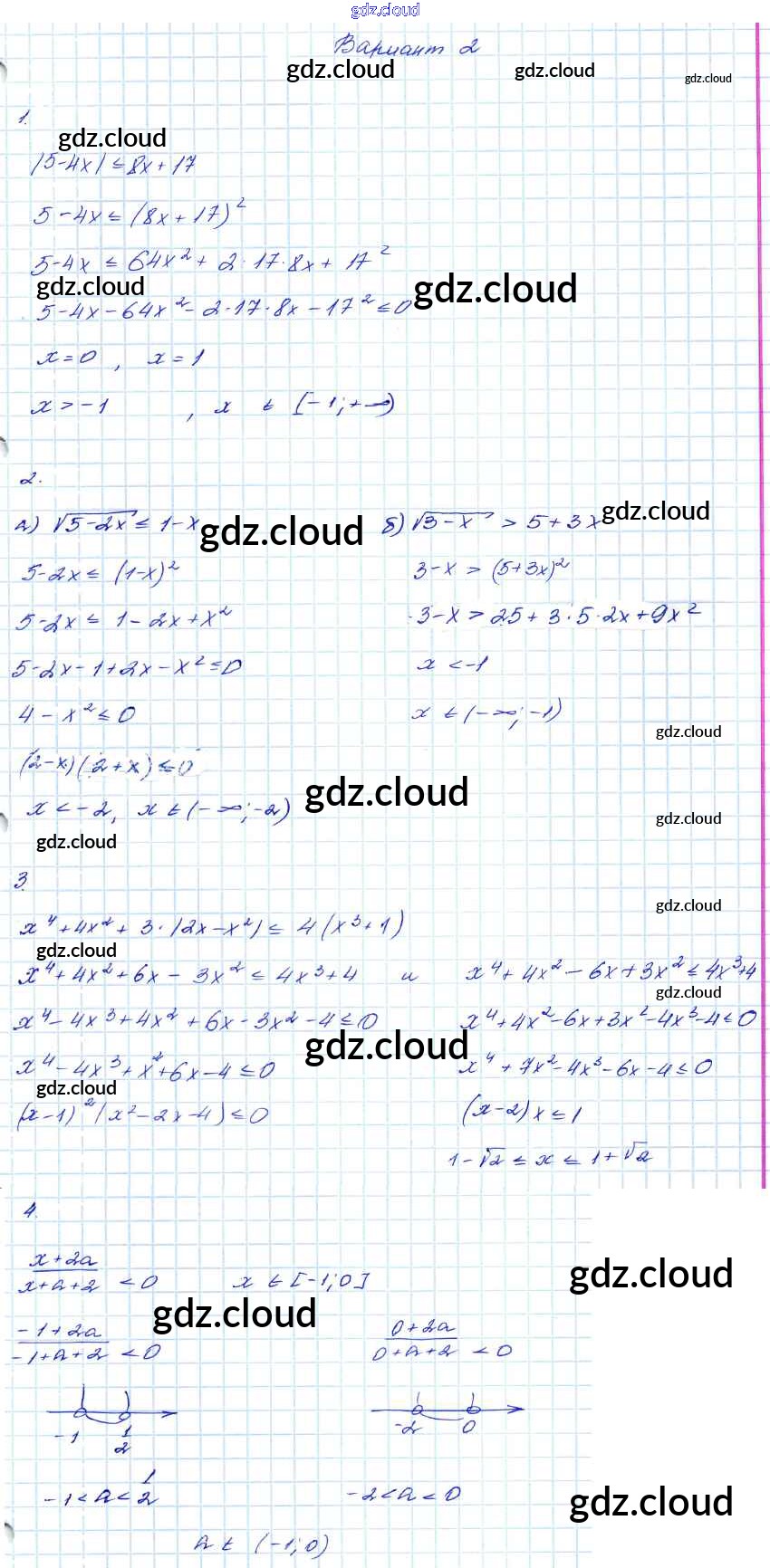 КР-2. Варианты Ответы к 9 Класс по Алгебре 7, 8, 9 класс Контрольные работы Мордкович Углубленный уровень Мнемозина