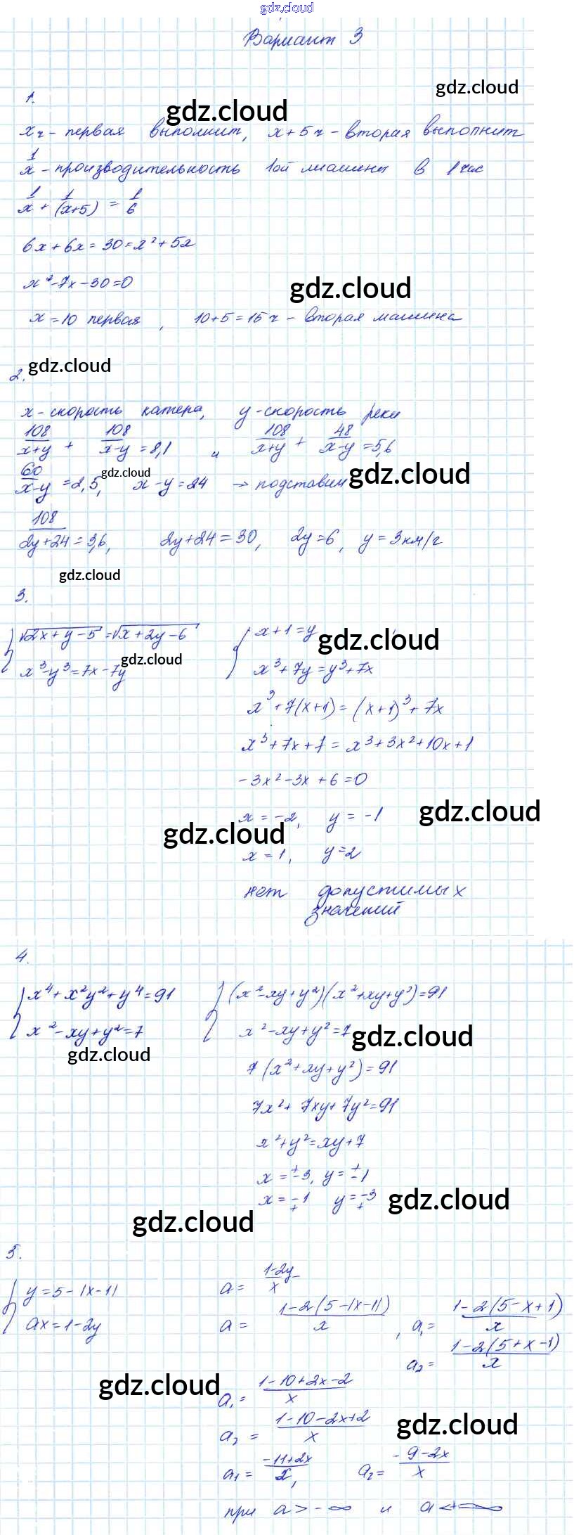 Ответ на задание 3 Контрольные работы Алгебра за 7, 8, 9 (седьмой, восьмой, девятый) класс Мордкович Углубленный уровень 2016