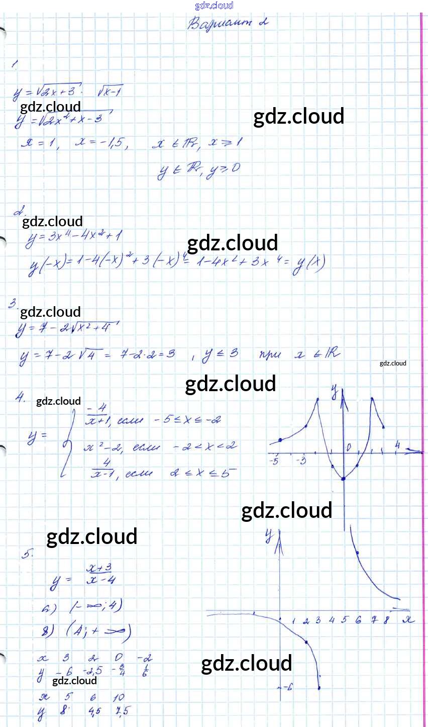 КР-5. Варианты Ответы к 9 Класс по Алгебре 7, 8, 9 класс Контрольные работы Мордкович Углубленный уровень Мнемозина