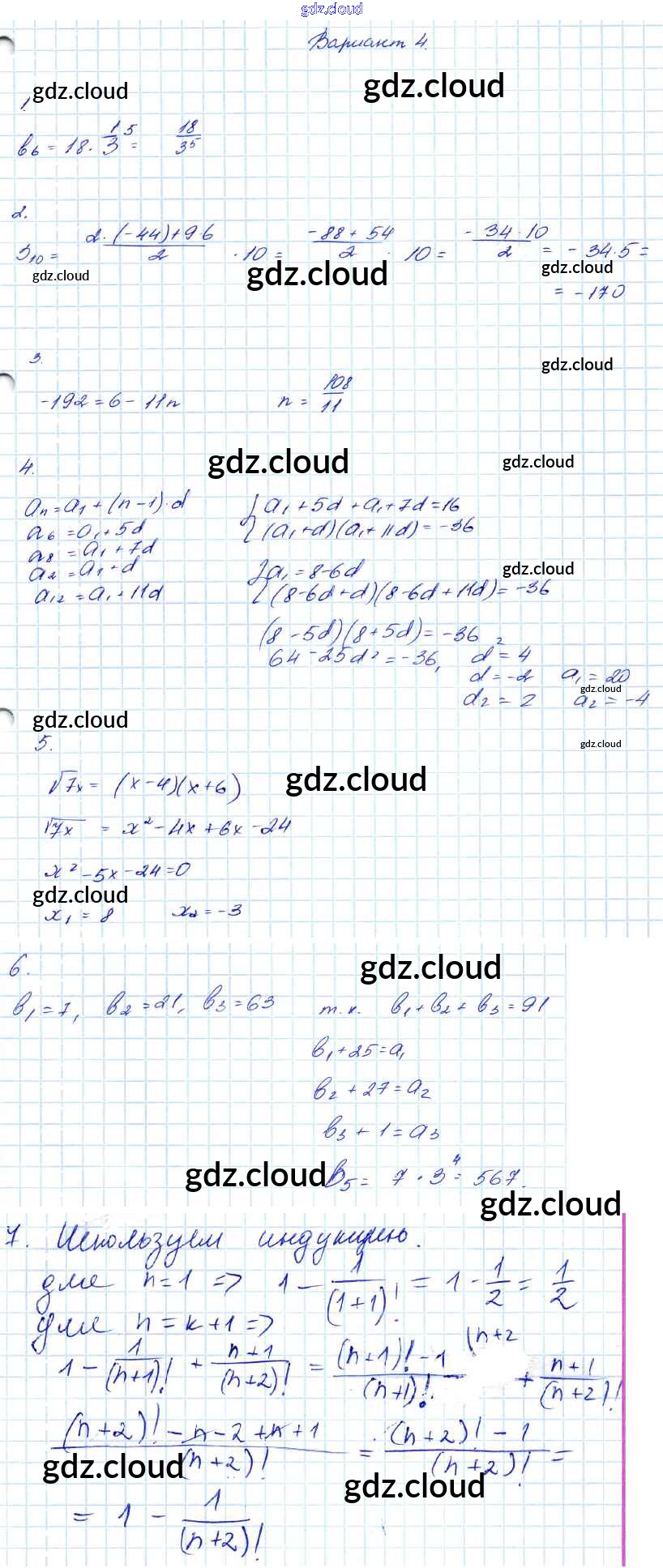 КР-7. Варианты Ответы к 9 Класс по Алгебре 7, 8, 9 класс Контрольные работы Мордкович Углубленный уровень Мнемозина