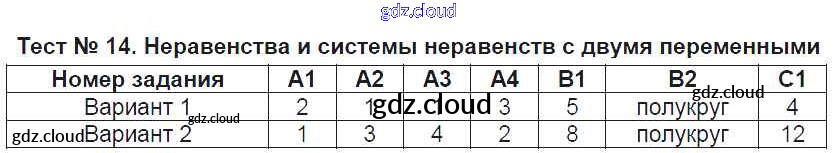 Ответ на задание Тест №14. Неравенства и системы неравенств с двумя переменными Контрольно-измерительные материалы (КИМ) Алгебра за 9 (девятый) класс Мартышова 2015