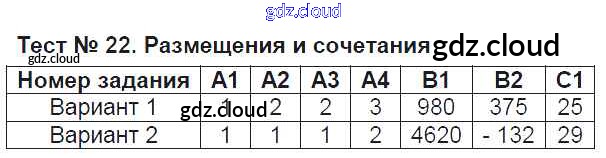 Ответ на задание Тест №22. Размещения и сочетания Контрольно-измерительные материалы (КИМ) Алгебра за 9 (девятый) класс Мартышова 2015