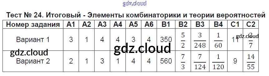 Ответ на задание Тест №24. Итоговый - Элементы комбинаторики и теории вероятностей Контрольно-измерительные материалы (КИМ) Алгебра за 9 (девятый) класс Мартышова 2015