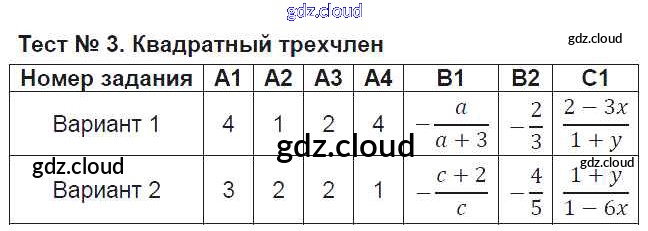 Ответ на задание Тест №3. Квадратный трехчлен Контрольно-измерительные материалы (КИМ) Алгебра за 9 (девятый) класс Мартышова 2015
