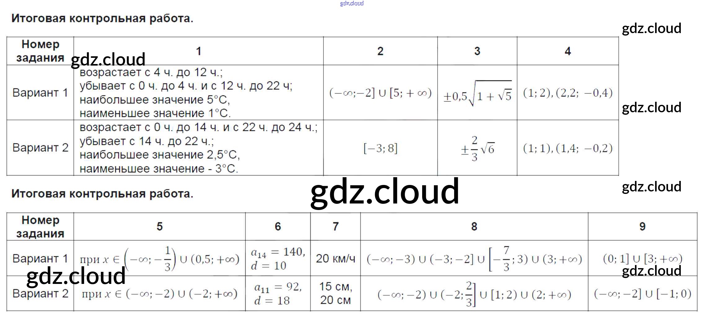 Ответ на задание Итоговая КР-10 Контрольно-измерительные материалы (КИМ) Алгебра за 9 (девятый) класс Мартышова 2015