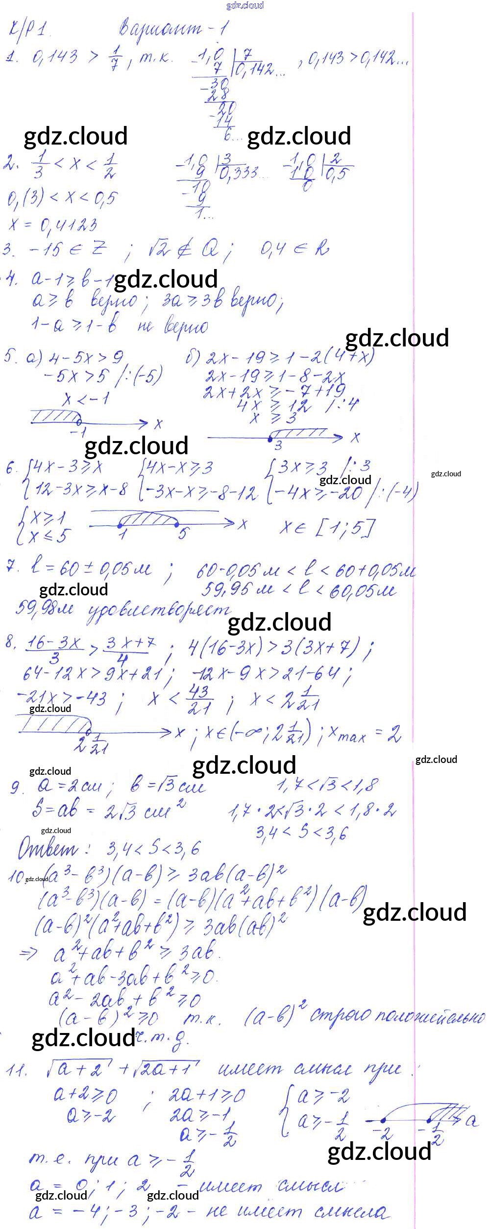 Ответы к КР-1. Неравенства по Алгебре 9 класс Контрольные работы Кузнецова Просвещение