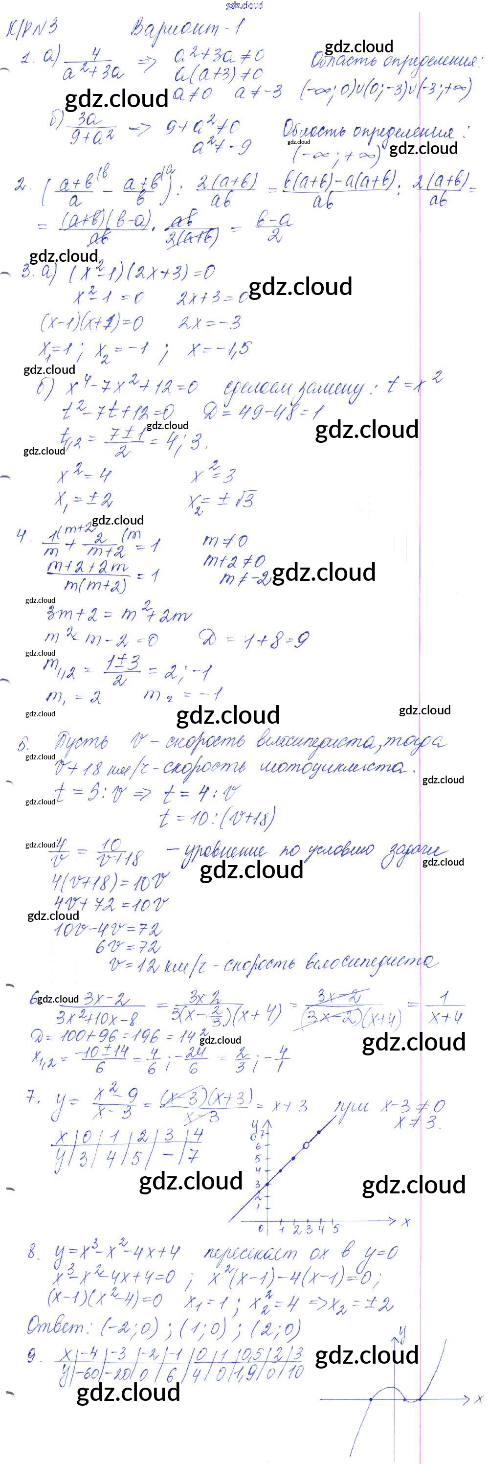 Ответы к КР-3. Рациональные выражения. Уравнения с одной переменной по Алгебре 9 класс Контрольные работы Кузнецова Просвещение