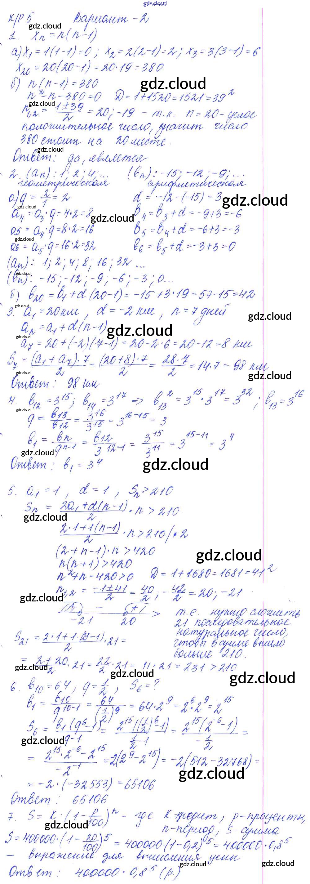 Ответы к КР-5. Арифметическая и геометрическая прогрессии по Алгебре 9 класс Контрольные работы Кузнецова Просвещение