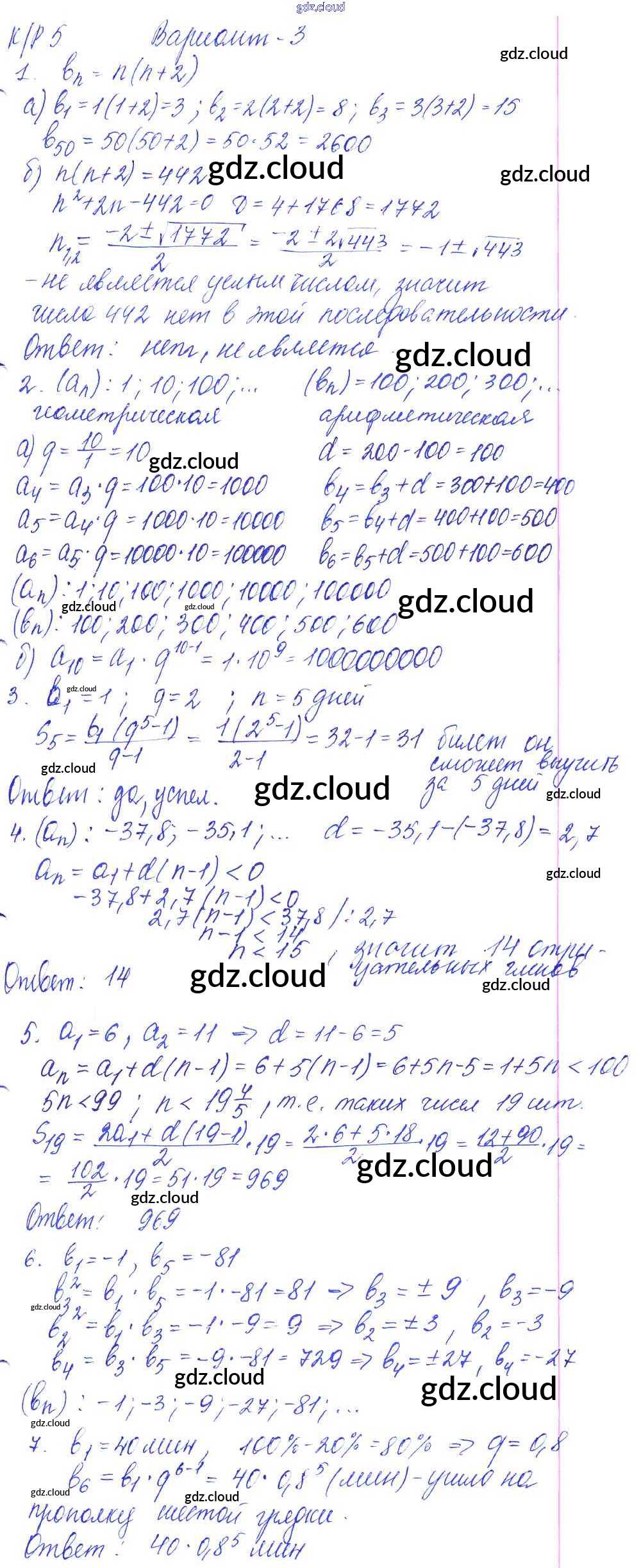 Ответы к КР-5. Арифметическая и геометрическая прогрессии по Алгебре 9 класс Контрольные работы Кузнецова Просвещение
