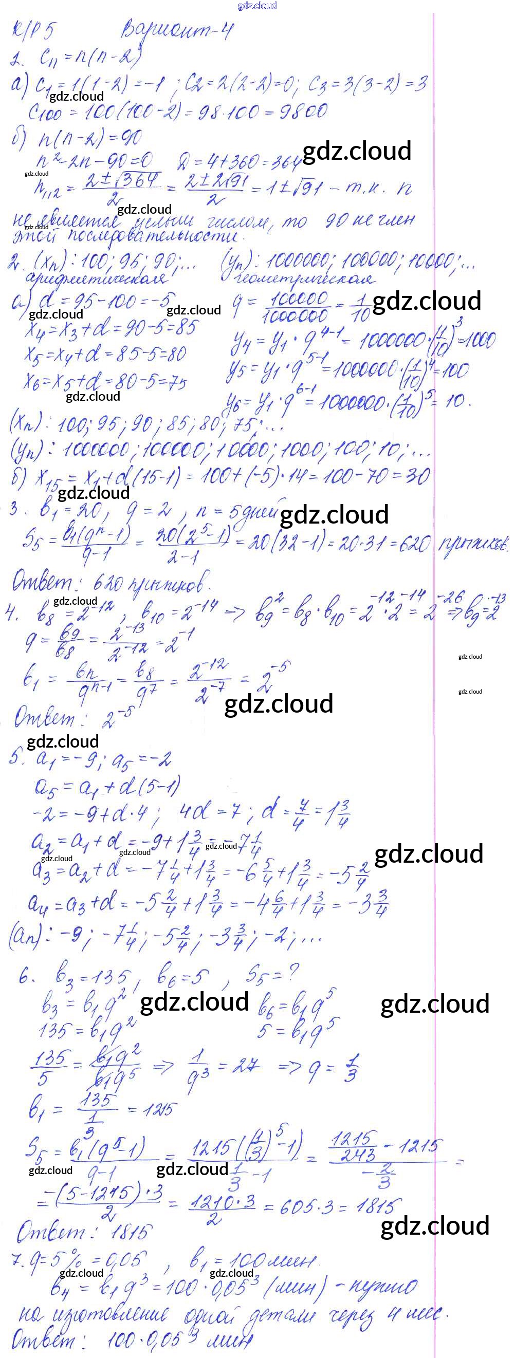 Ответы к КР-5. Арифметическая и геометрическая прогрессии по Алгебре 9 класс Контрольные работы Кузнецова Просвещение