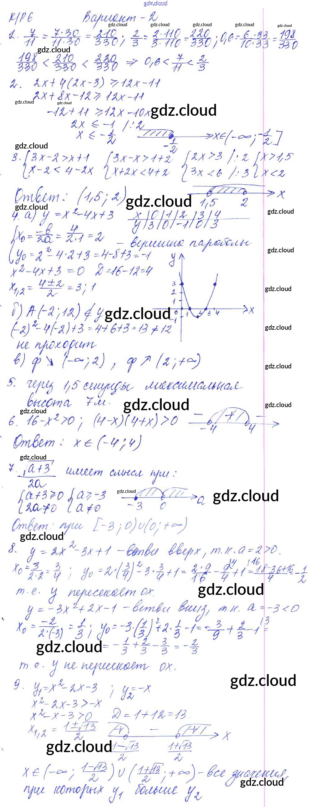 Ответ на задание вариант №2 Контрольные работы Алгебра за 9 (девятый) класс Кузнецова, Минаева, Рослова, Суворова 2016