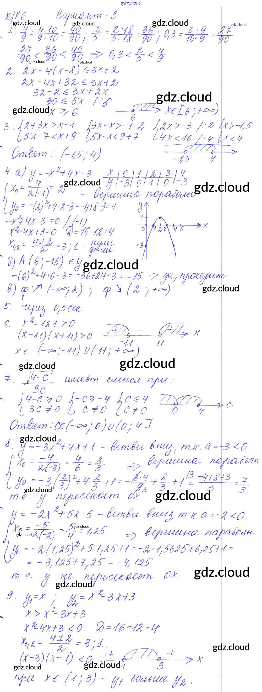 Ответ на задание вариант №3 Контрольные работы Алгебра за 9 (девятый) класс Кузнецова, Минаева, Рослова, Суворова 2016