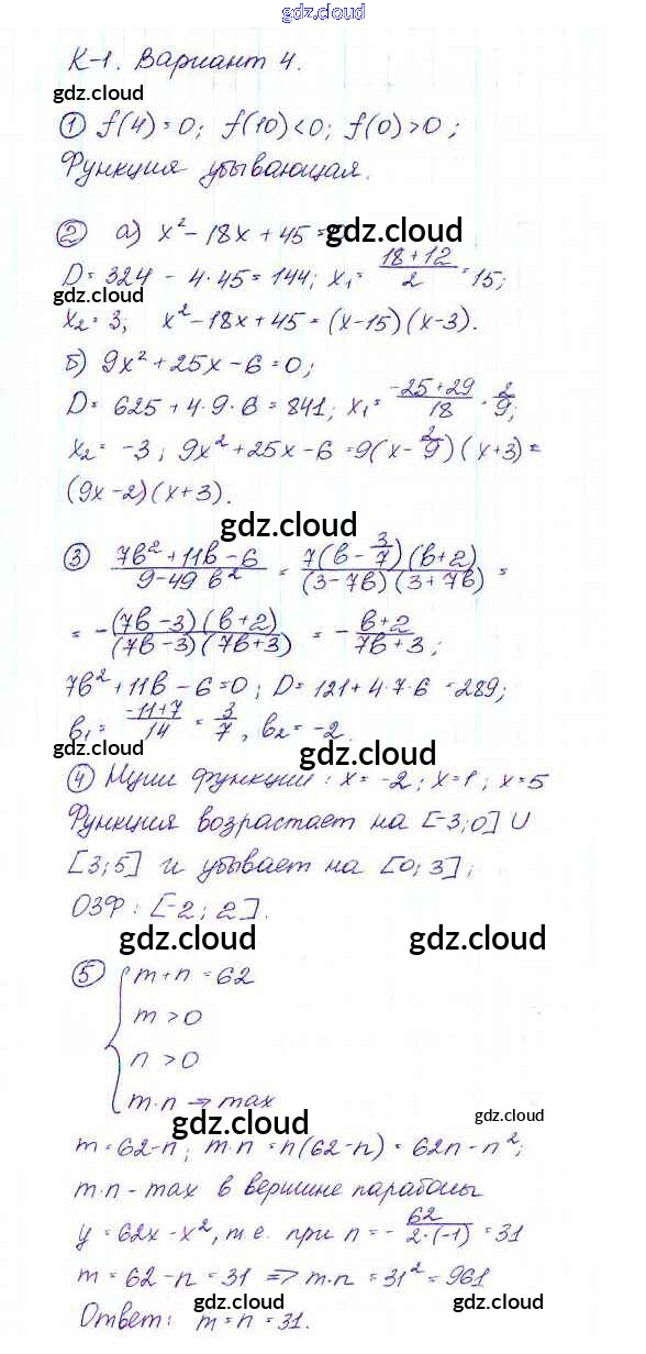 КР-1 Ответы к Контрольным работам по Алгебре 9 класс Дидактические материалы Макарычев Просвещение