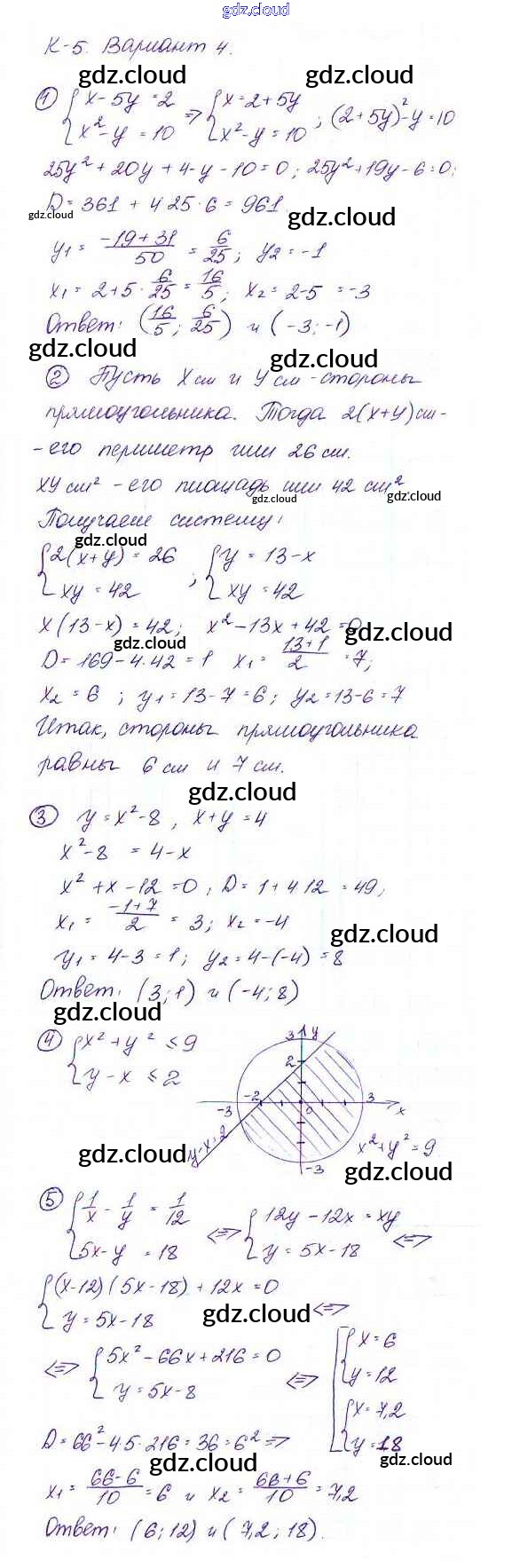 КР-5 Ответы к Контрольным работам по Алгебре 9 класс Дидактические материалы Макарычев Просвещение
