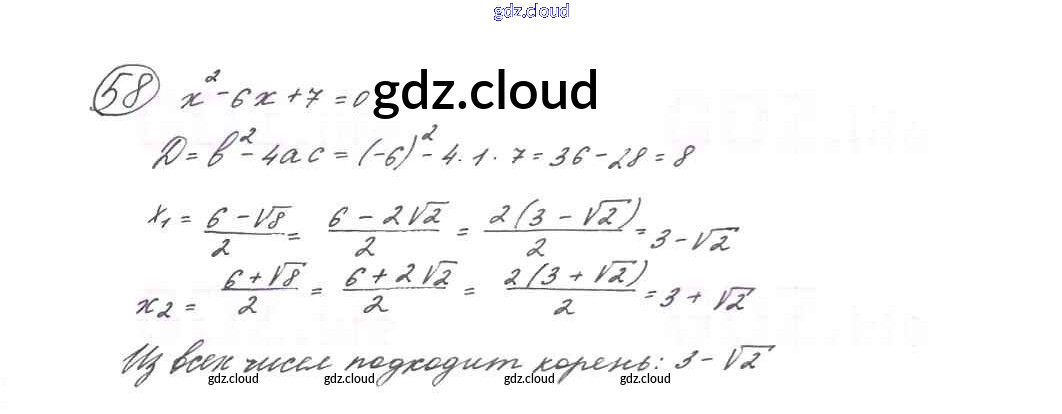 Ответ на задание 58 Учебник Алгебра за 9 (девятый) класс Макарычев, Миндюк, Нешков, Суворова 2014
