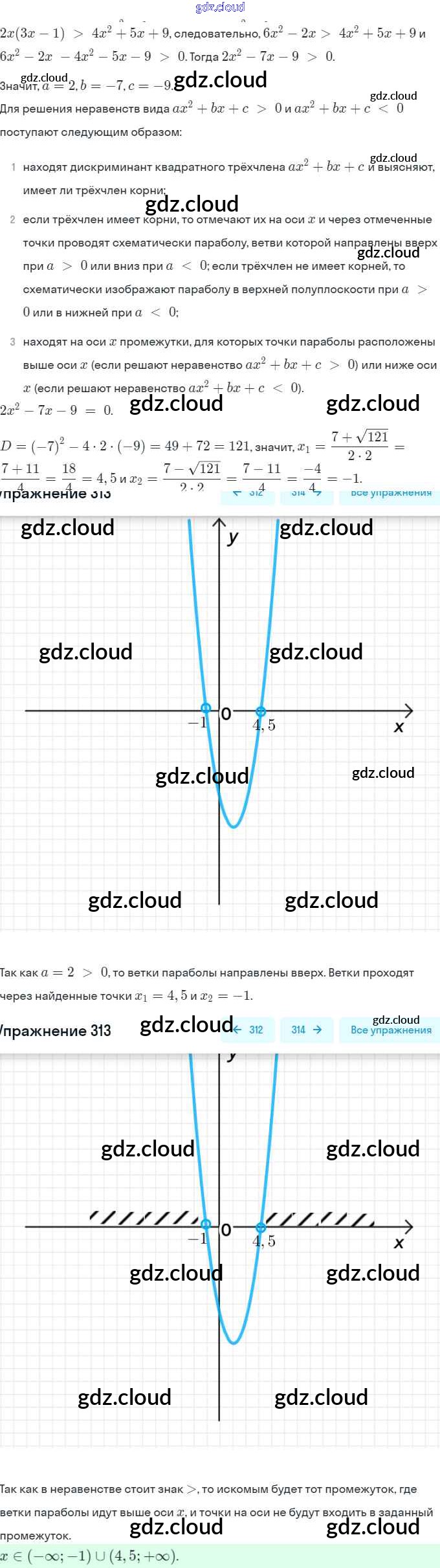 Ответ на задание 313 Учебник Алгебра за 9 (девятый) класс Макарычев, Миндюк, Нешков, Суворова 2014