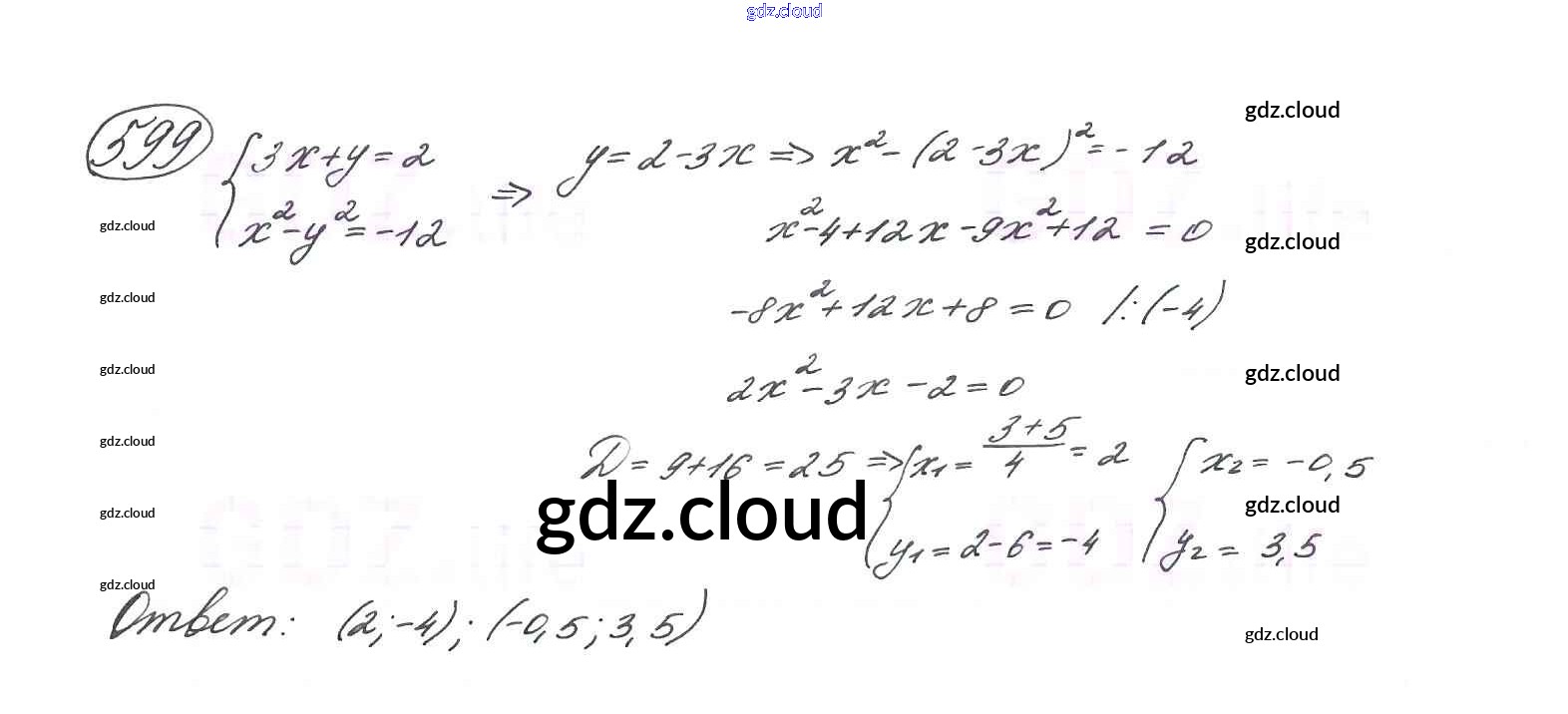 Ответ на задание 599 Учебник Алгебра за 9 (девятый) класс Макарычев, Миндюк, Нешков, Суворова 2014