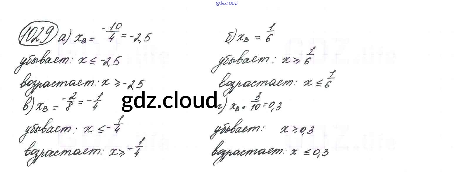 Ответ на задание 1029 Учебник Алгебра за 9 (девятый) класс Макарычев, Миндюк, Нешков, Суворова 2014