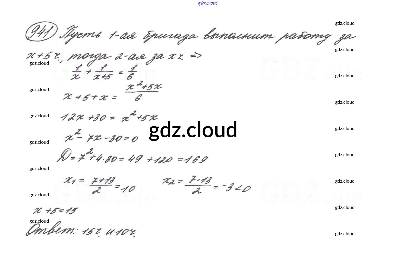 Ответ на задание 941 Учебник Алгебра за 9 (девятый) класс Макарычев, Миндюк, Нешков, Суворова 2014