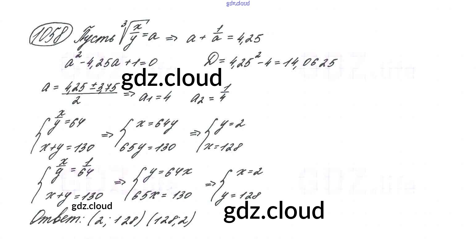 Ответ на задание 1058 Учебник Алгебра за 9 (девятый) класс Макарычев, Миндюк, Нешков, Суворова 2014
