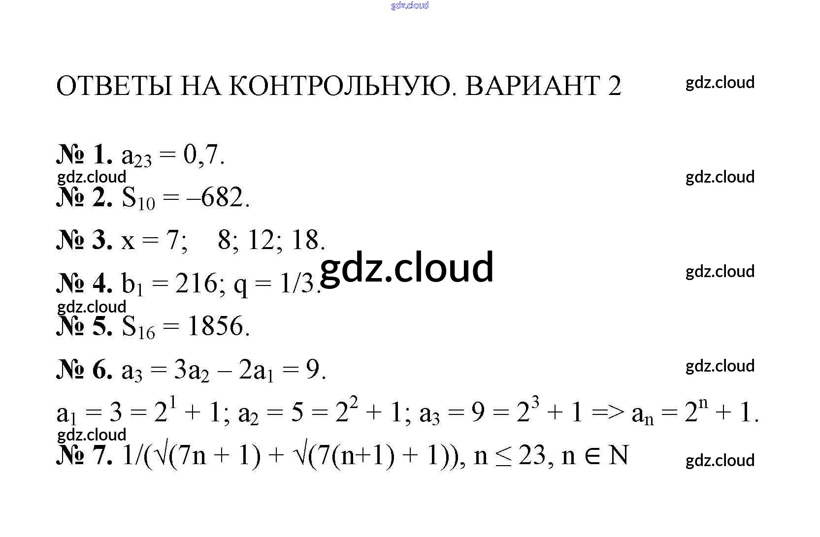 Ответы к Контрольной работе 7 по Алгебре 9 класс Самостоятельные и контрольные работы Мерзляк Алгоритм успеха Вентана-граф