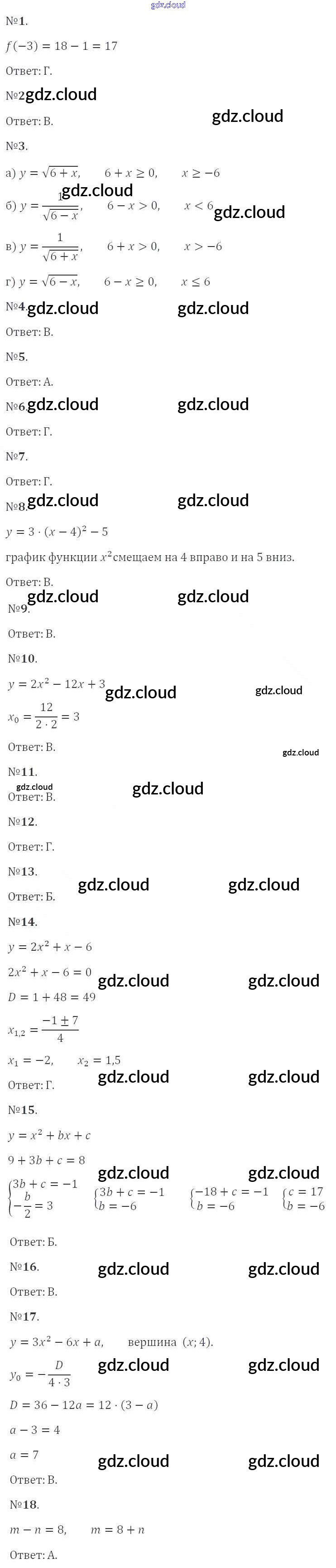Ответы. Проверь себя по Алгебре 9 класс Учебник Мерзляк Алгоритм успеха Вентана-граф, Просвещение