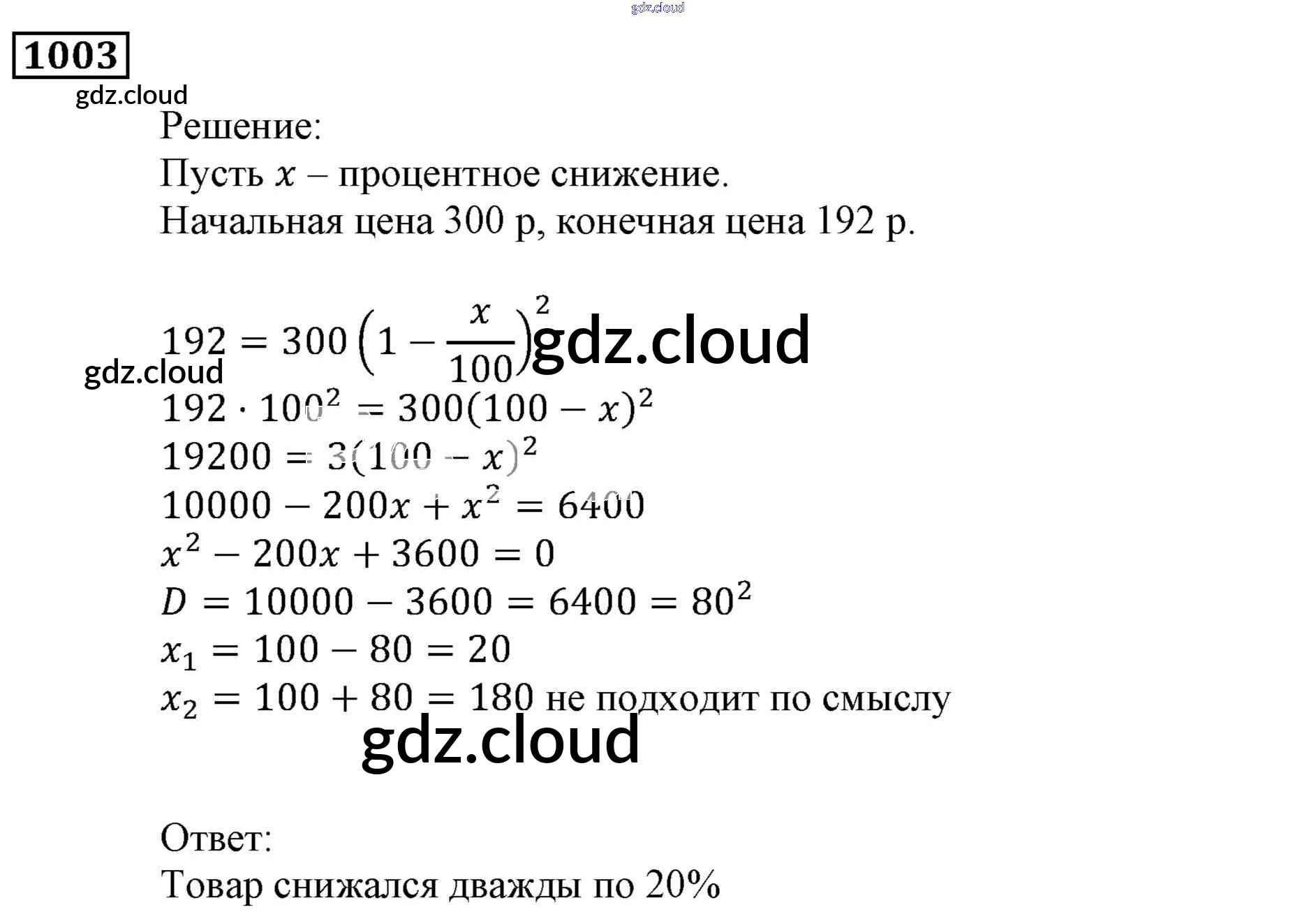 Ответ на задание 1003 Учебник Алгебра за 9 (девятый) класс Мерзляк, Полонский, Якир Алгоритм успеха 2016, 2021