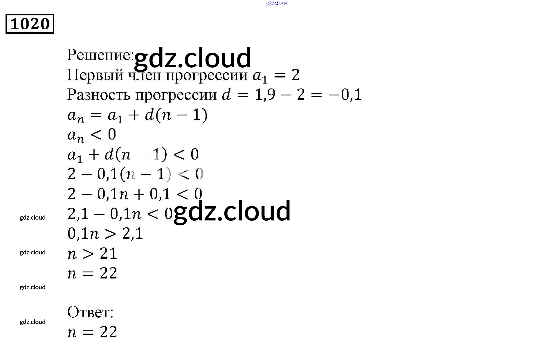 Ответ на задание 1020 Учебник Алгебра за 9 (девятый) класс Мерзляк, Полонский, Якир Алгоритм успеха 2016, 2021