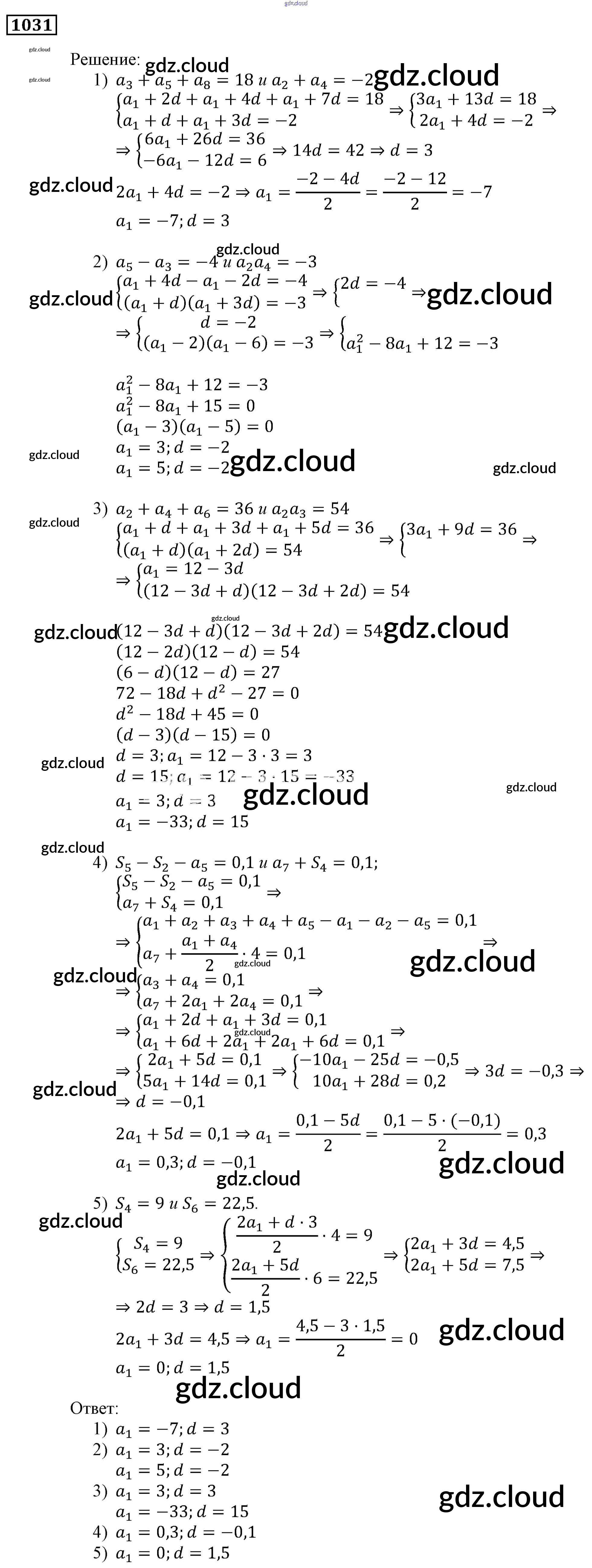 Ответ на задание 1031 Учебник Алгебра за 9 (девятый) класс Мерзляк, Полонский, Якир Алгоритм успеха 2016, 2021
