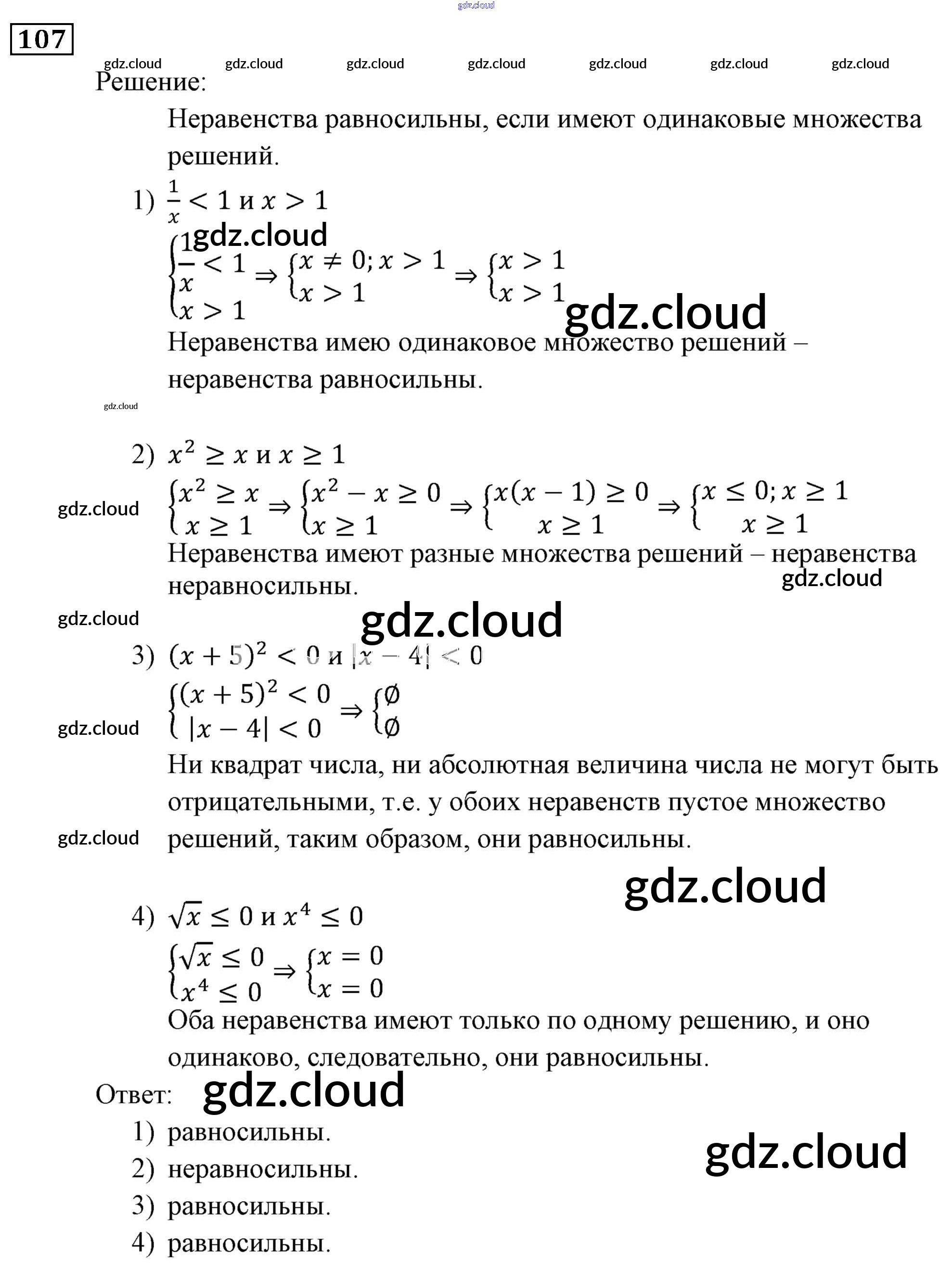 Ответ на задание 107 Учебник Алгебра за 9 (девятый) класс Мерзляк, Полонский, Якир Алгоритм успеха 2016, 2021