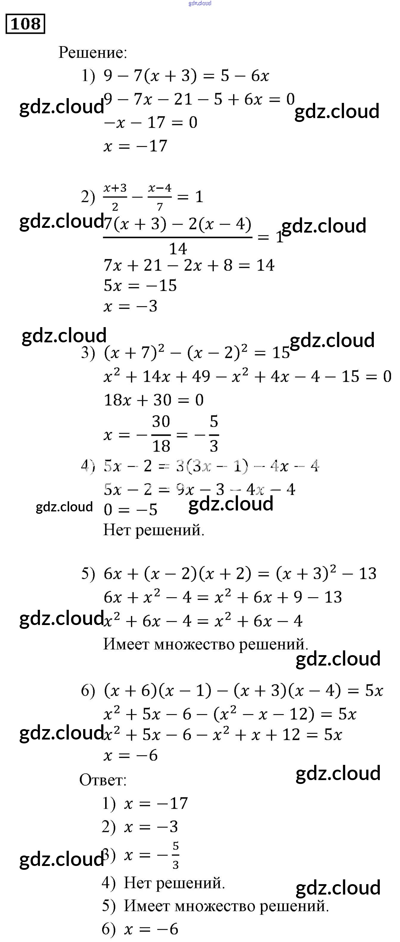 Ответ на задание 108 Учебник Алгебра за 9 (девятый) класс Мерзляк, Полонский, Якир Алгоритм успеха 2016, 2021