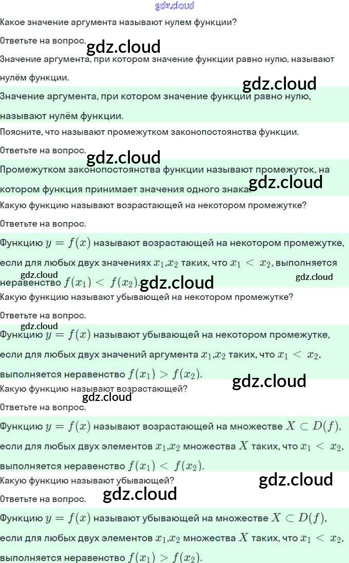 Ответы. Вопросы к параграфам по Алгебре 9 класс Учебник Мерзляк Алгоритм успеха Вентана-граф, Просвещение