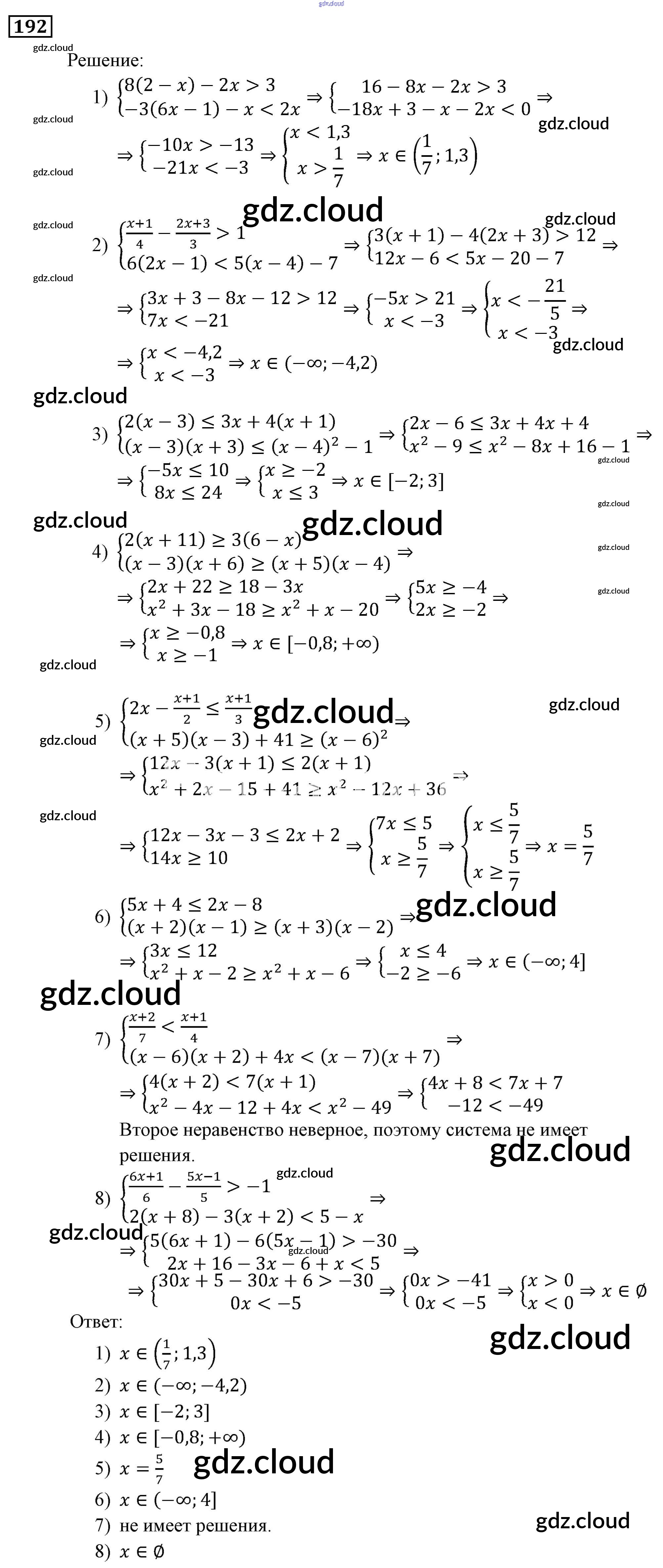Ответ на задание 192 Учебник Алгебра за 9 (девятый) класс Мерзляк, Полонский, Якир Алгоритм успеха 2016, 2021