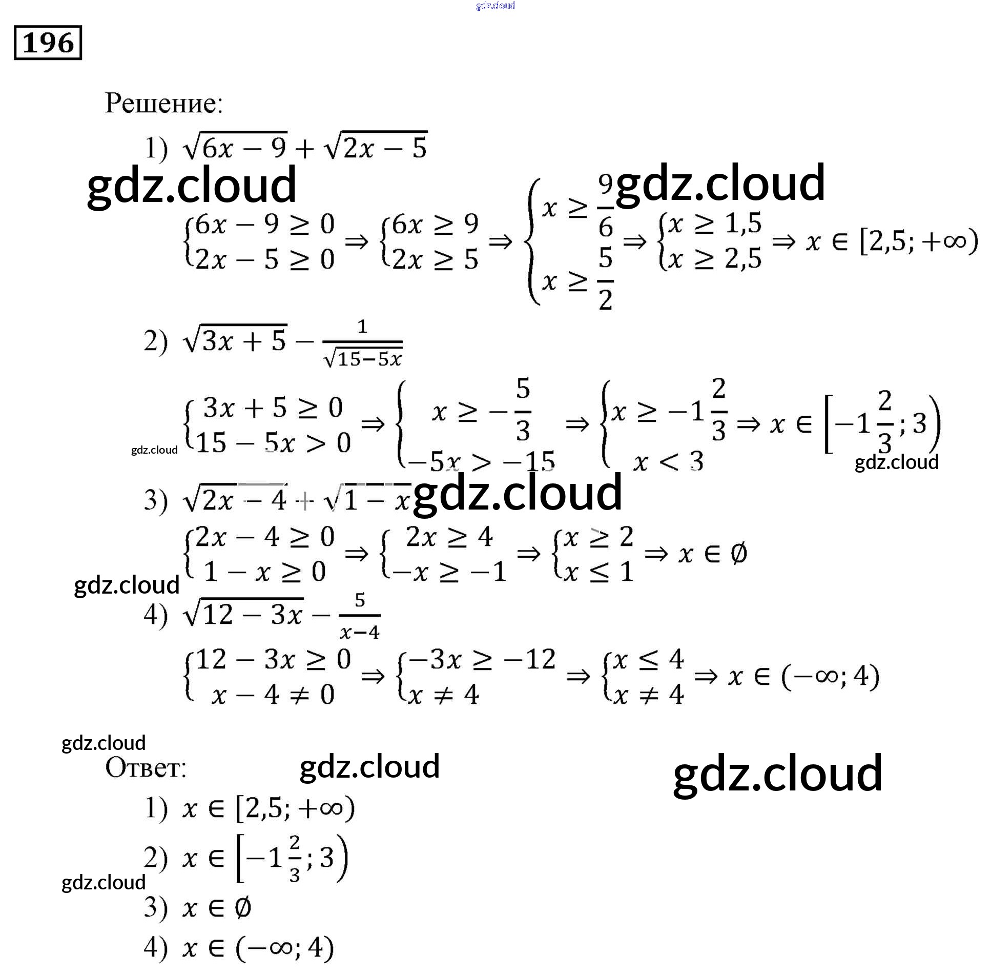 Ответ на задание 196 Учебник Алгебра за 9 (девятый) класс Мерзляк, Полонский, Якир Алгоритм успеха 2016, 2021