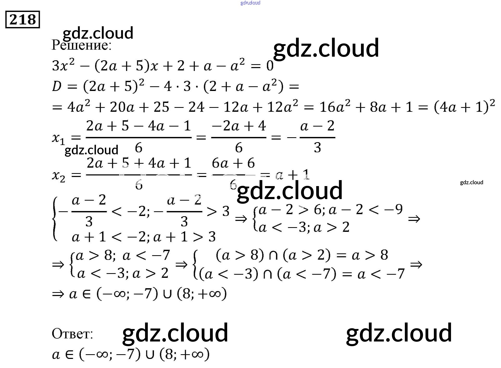 Ответ на задание 218 Учебник Алгебра за 9 (девятый) класс Мерзляк, Полонский, Якир Алгоритм успеха 2016, 2021