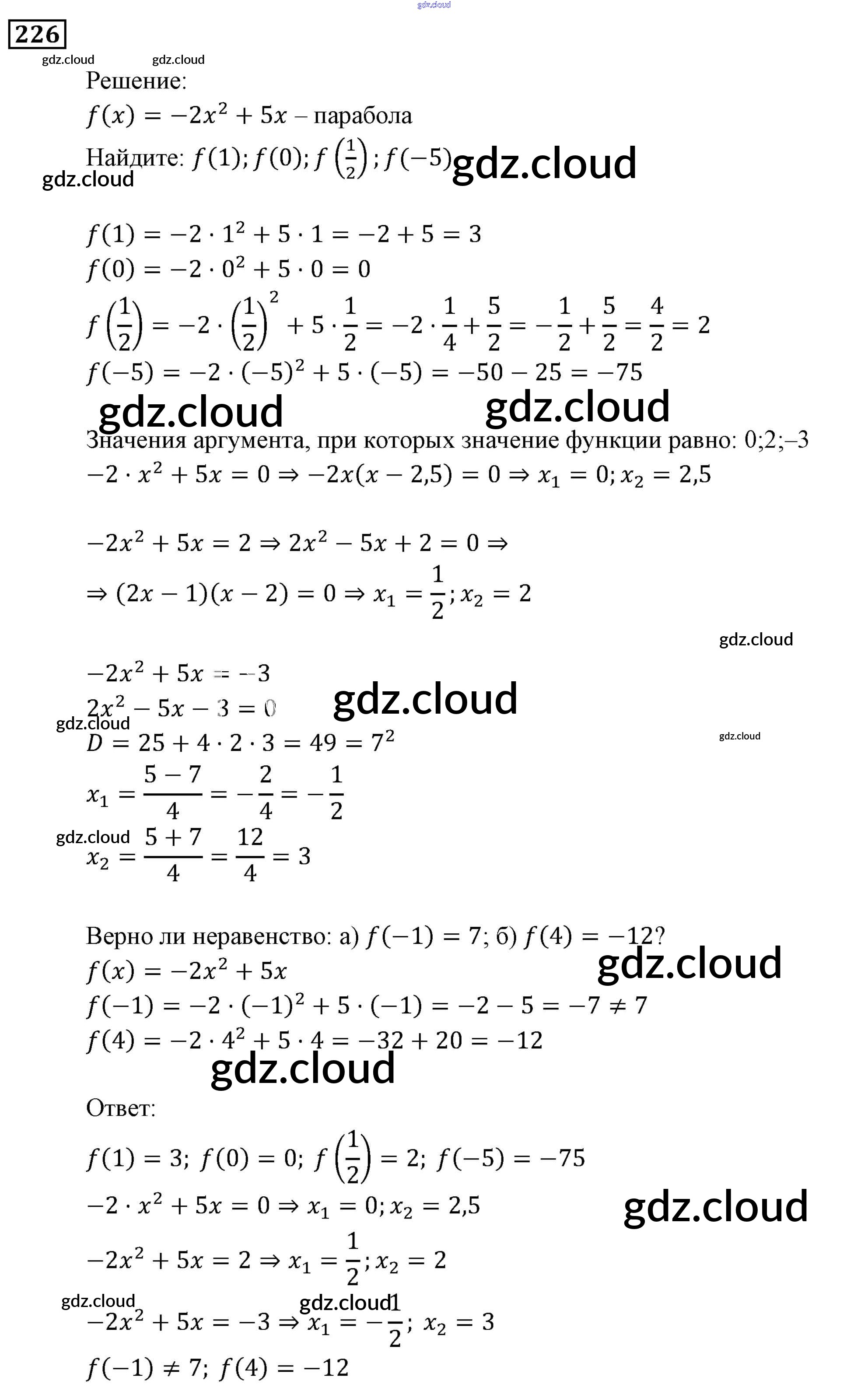 Ответ на задание 226 Учебник Алгебра за 9 (девятый) класс Мерзляк, Полонский, Якир Алгоритм успеха 2016, 2021