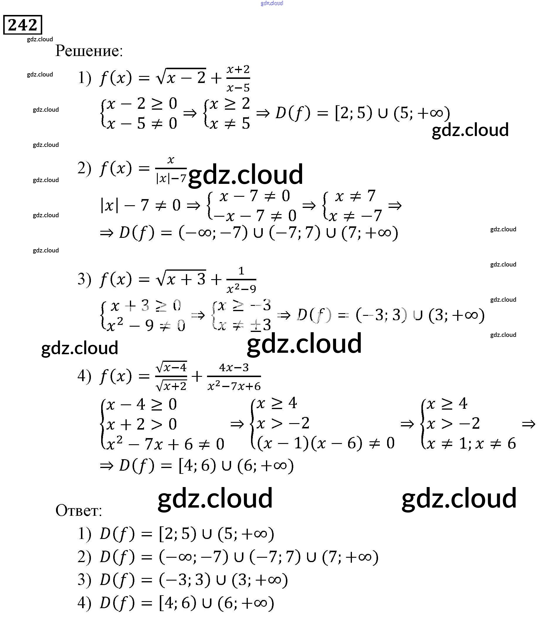 Ответ на задание 242 Учебник Алгебра за 9 (девятый) класс Мерзляк, Полонский, Якир Алгоритм успеха 2016, 2021