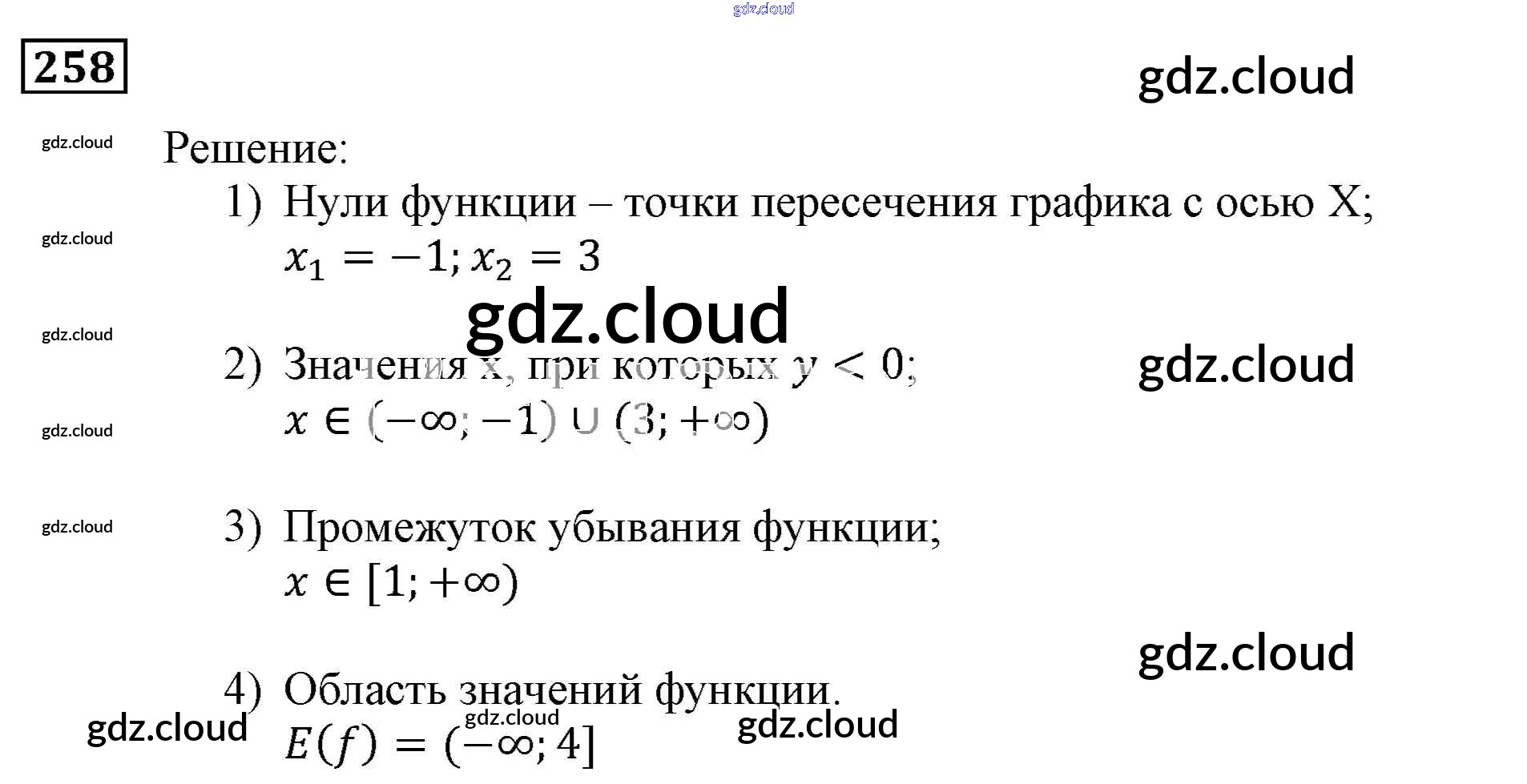 Ответ на задание 258 Учебник Алгебра за 9 (девятый) класс Мерзляк, Полонский, Якир Алгоритм успеха 2016, 2021