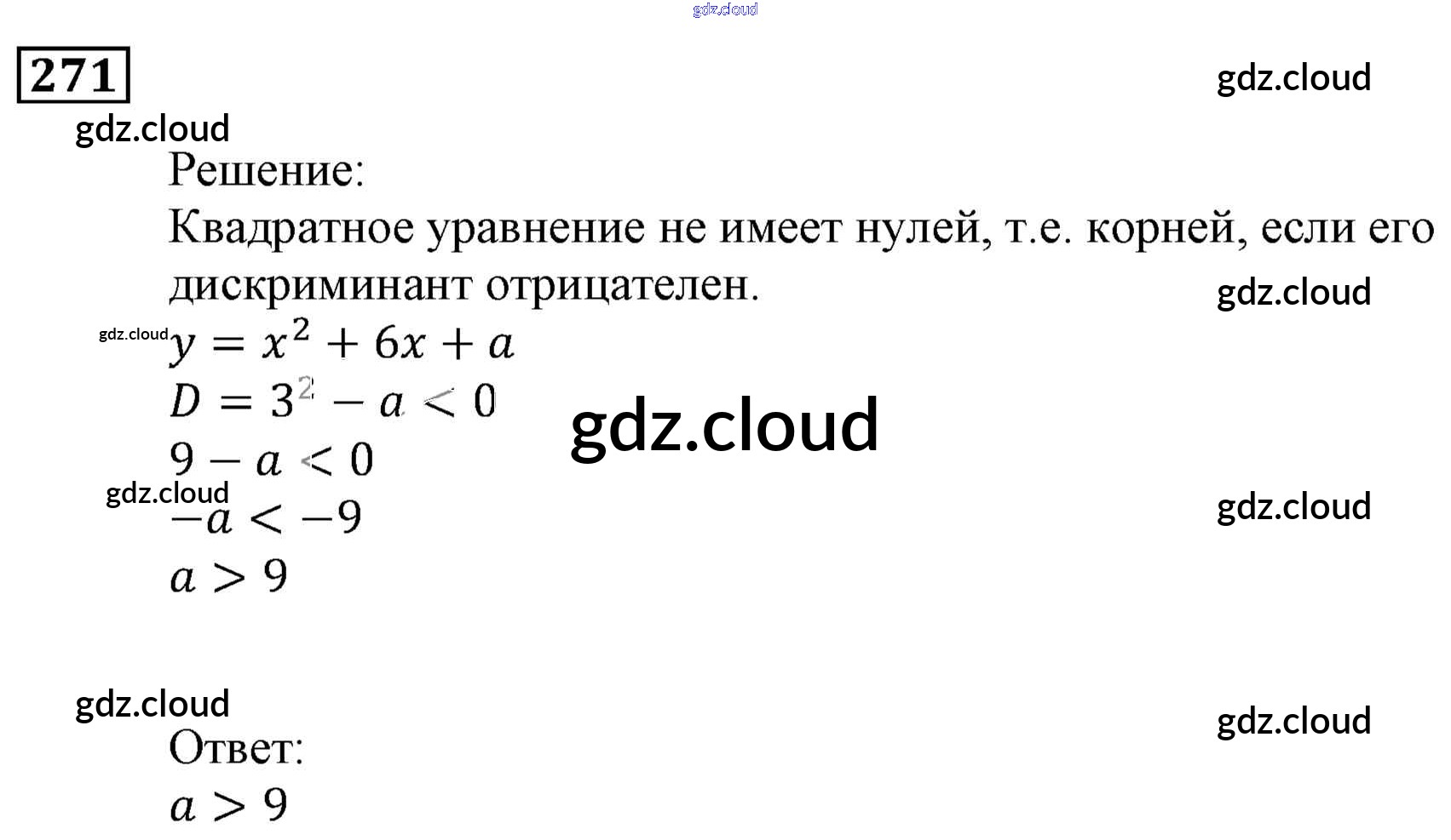 Ответ на задание 271 Учебник Алгебра за 9 (девятый) класс Мерзляк, Полонский, Якир Алгоритм успеха 2016, 2021