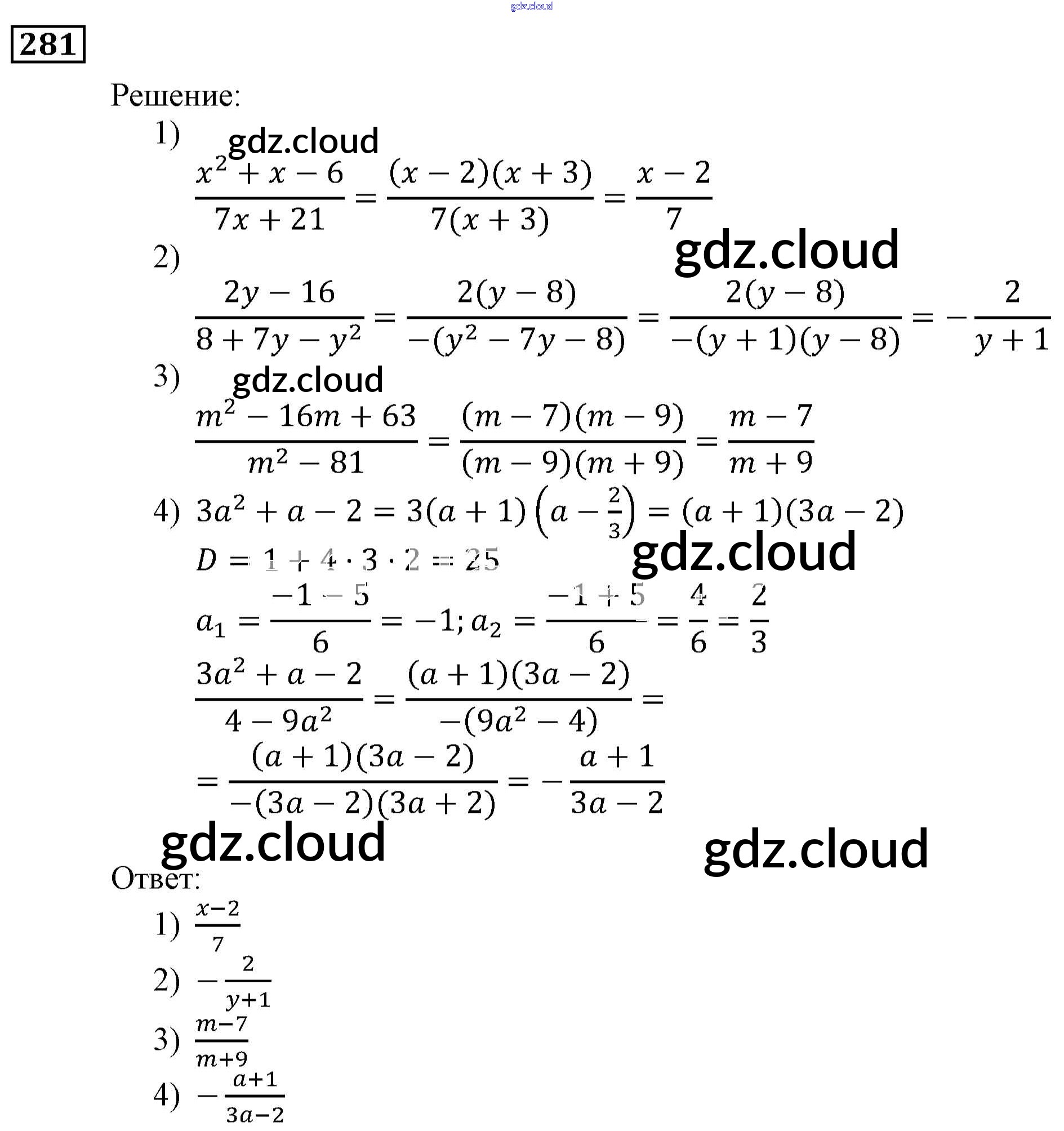 Ответ на задание 281 Учебник Алгебра за 9 (девятый) класс Мерзляк, Полонский, Якир Алгоритм успеха 2016, 2021