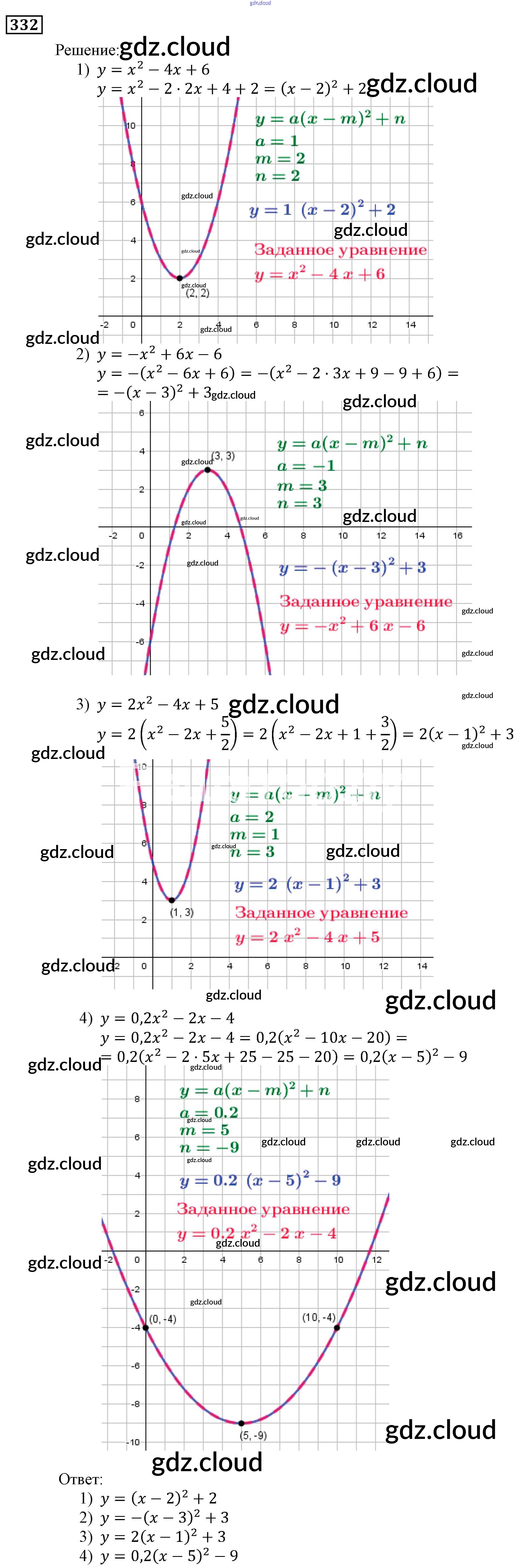 Ответ на задание 332 Учебник Алгебра за 9 (девятый) класс Мерзляк, Полонский, Якир Алгоритм успеха 2016, 2021