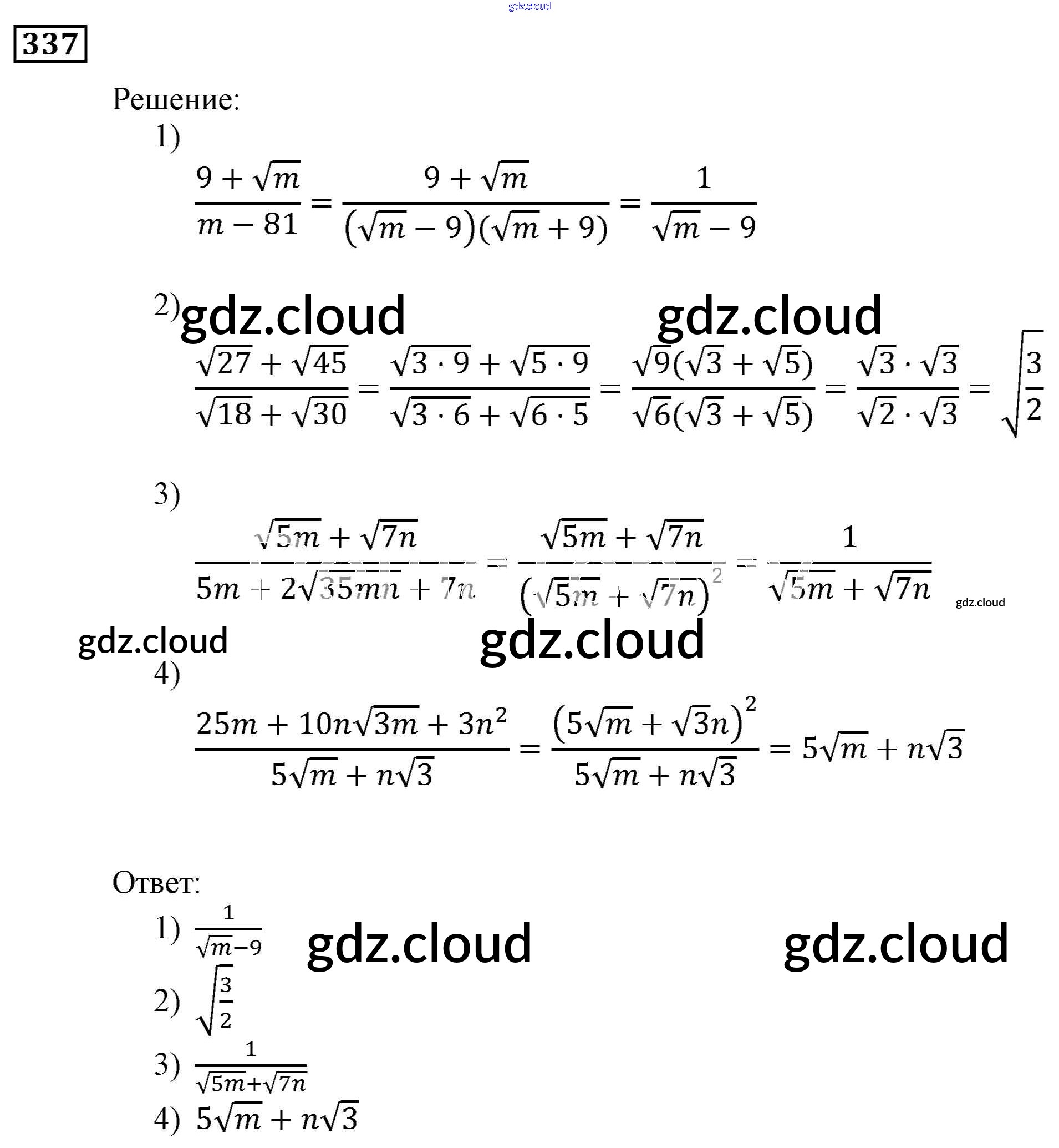 Ответ на задание 337 Учебник Алгебра за 9 (девятый) класс Мерзляк, Полонский, Якир Алгоритм успеха 2016, 2021