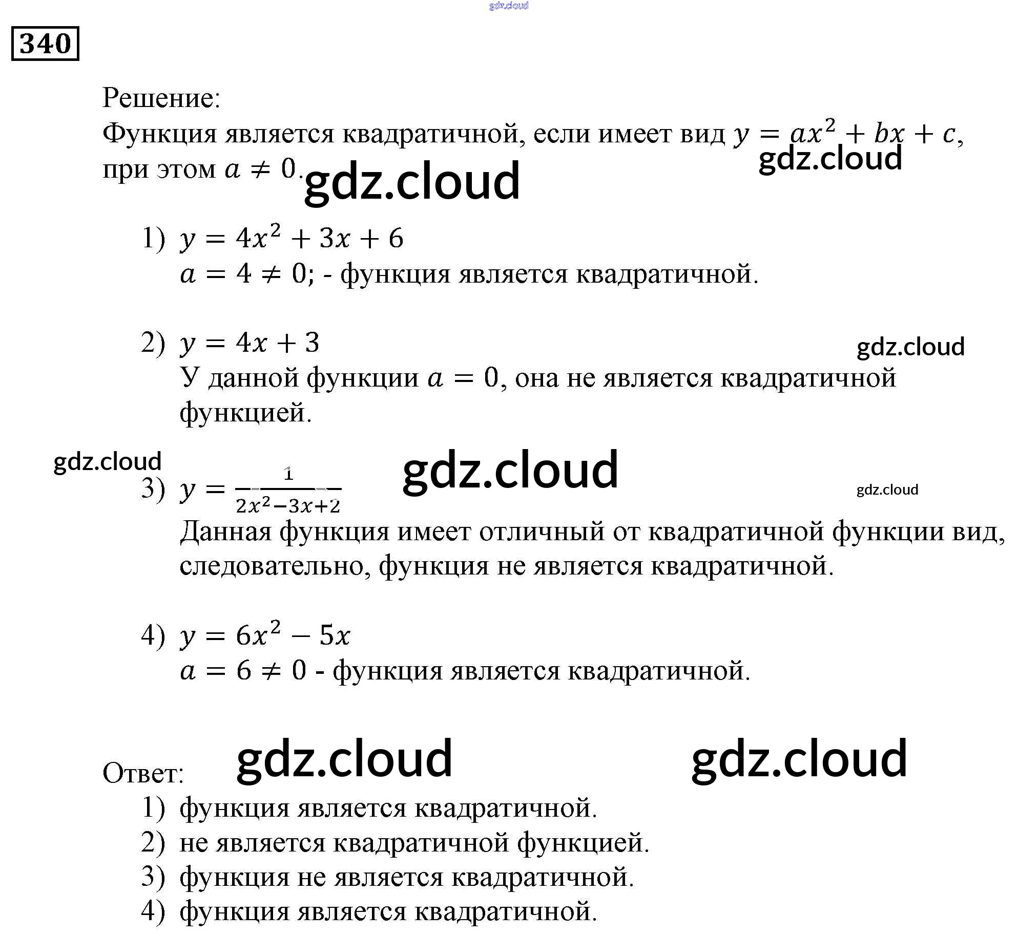 Ответ на задание 340 Учебник Алгебра за 9 (девятый) класс Мерзляк, Полонский, Якир Алгоритм успеха 2016, 2021