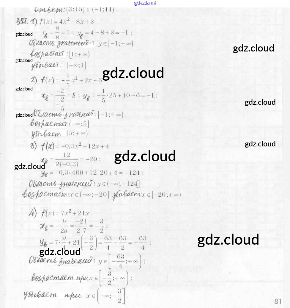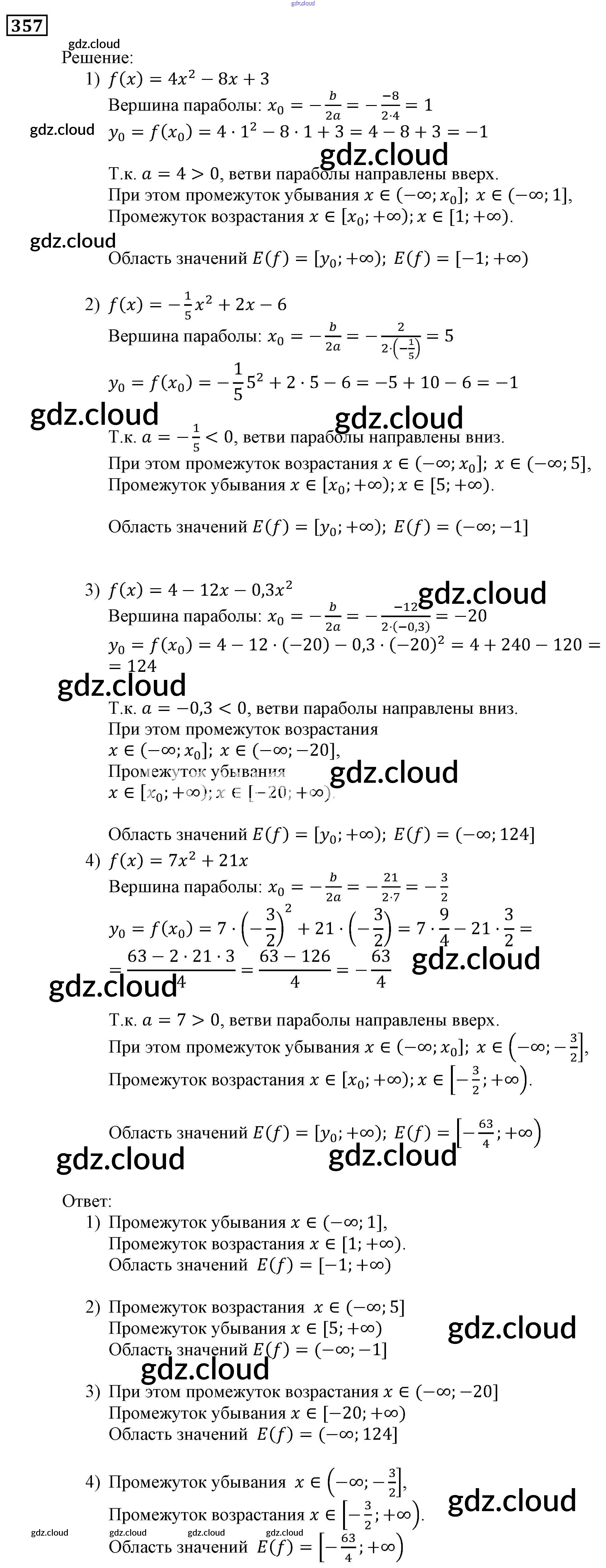 Ответ на задание 357 Учебник Алгебра за 9 (девятый) класс Мерзляк, Полонский, Якир Алгоритм успеха 2016, 2021