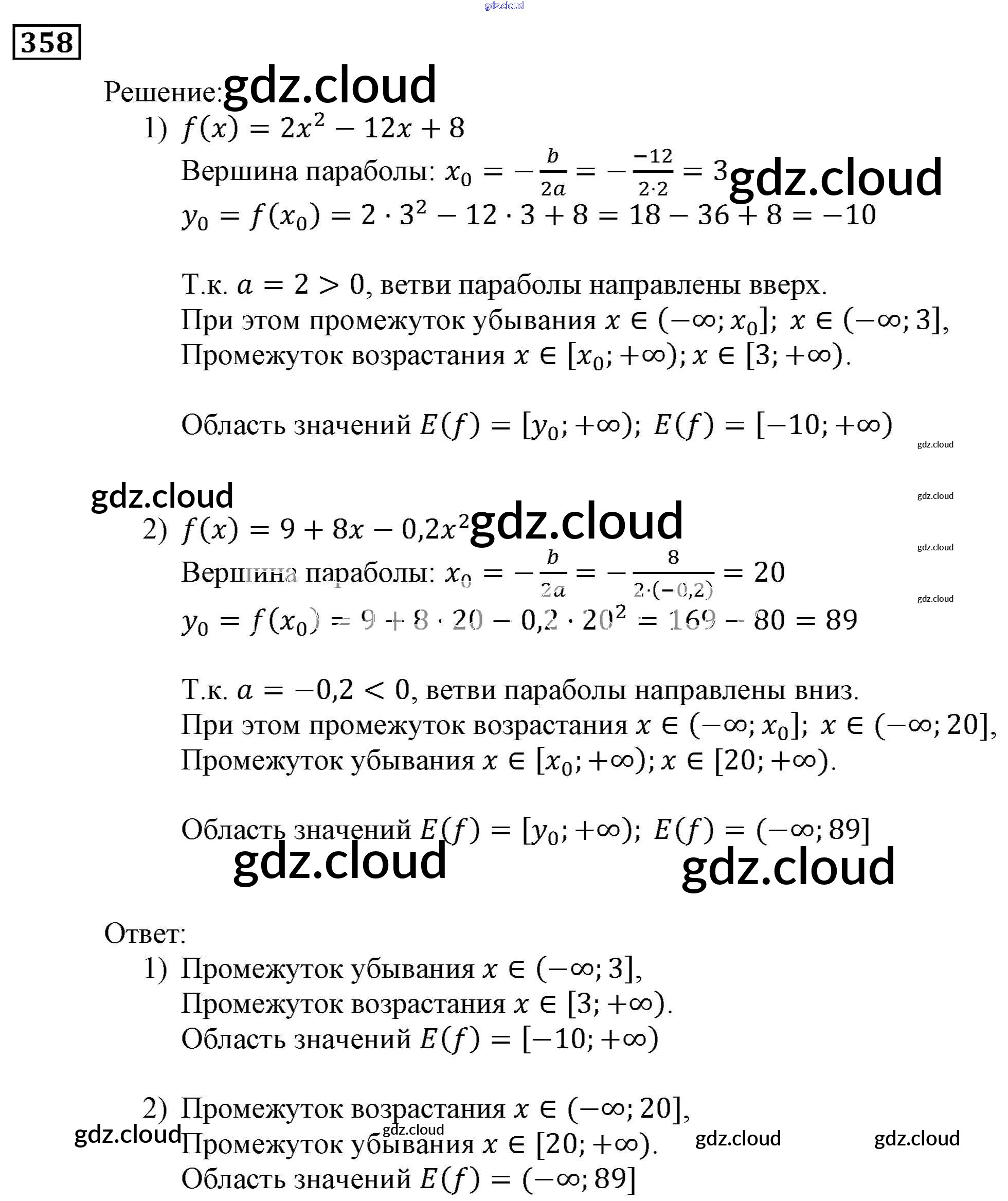 Ответ на задание 358 Учебник Алгебра за 9 (девятый) класс Мерзляк, Полонский, Якир Алгоритм успеха 2016, 2021