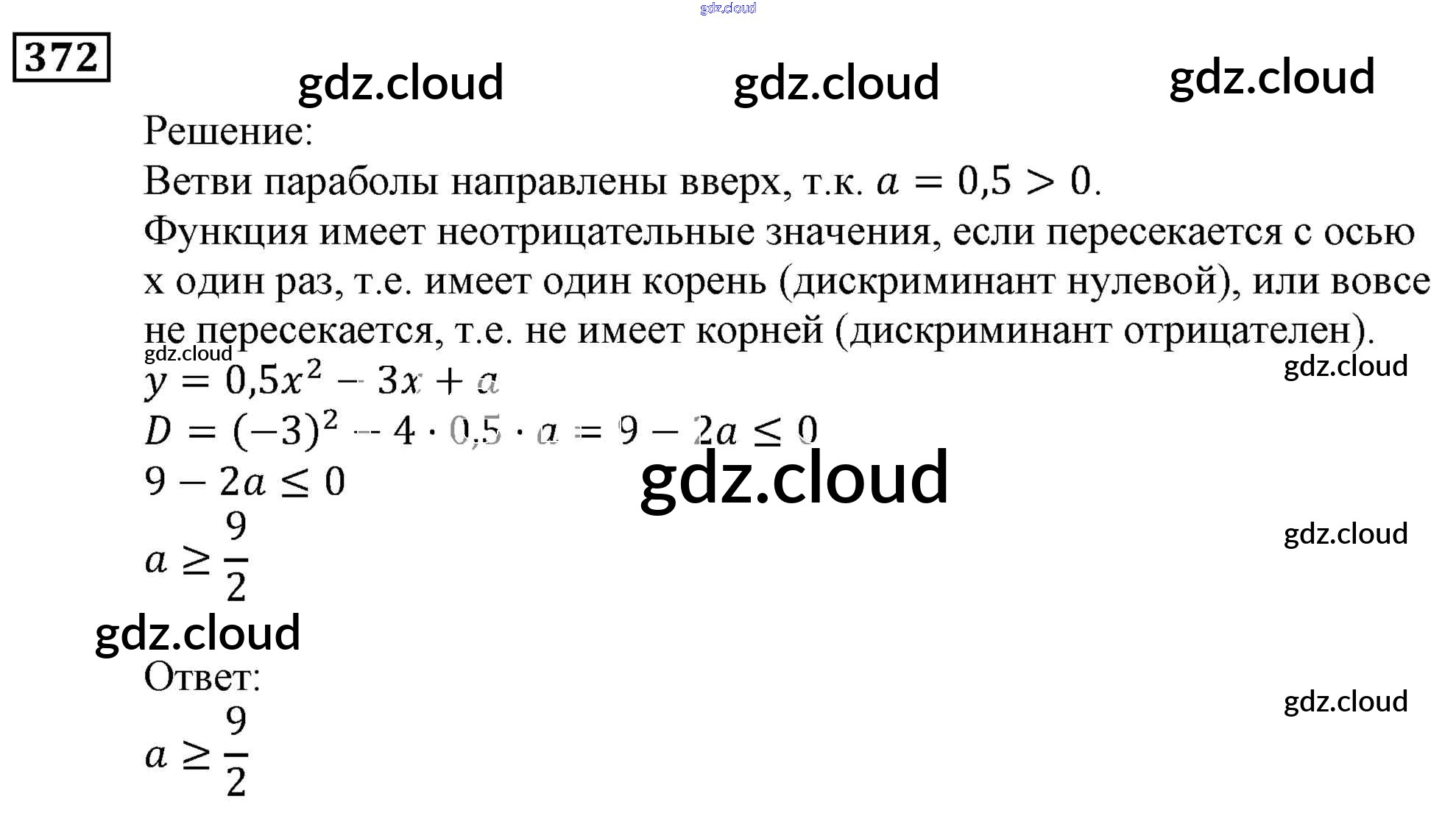 Ответ на задание 372 Учебник Алгебра за 9 (девятый) класс Мерзляк, Полонский, Якир Алгоритм успеха 2016, 2021