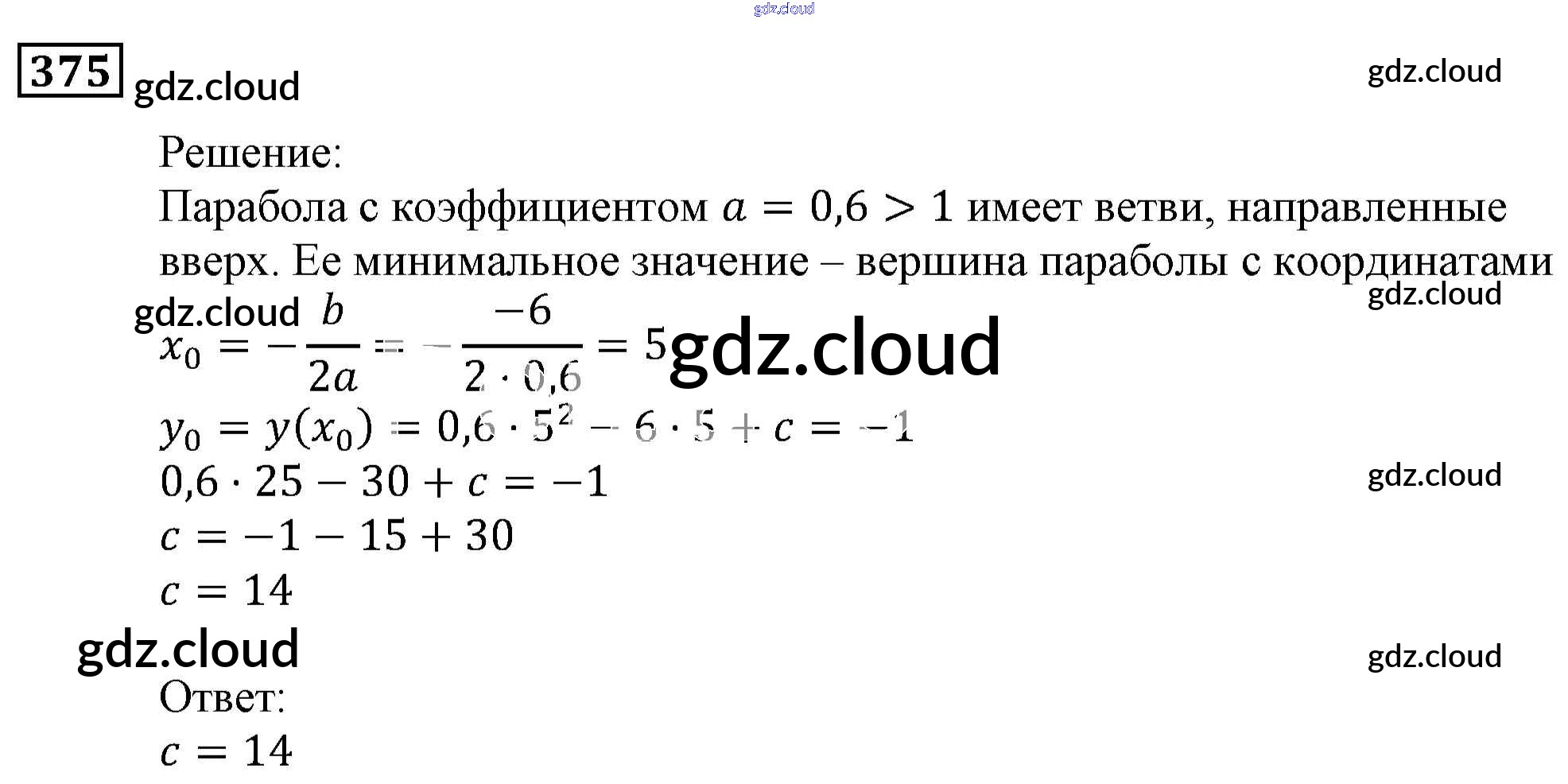 Ответ на задание 375 Учебник Алгебра за 9 (девятый) класс Мерзляк, Полонский, Якир Алгоритм успеха 2016, 2021