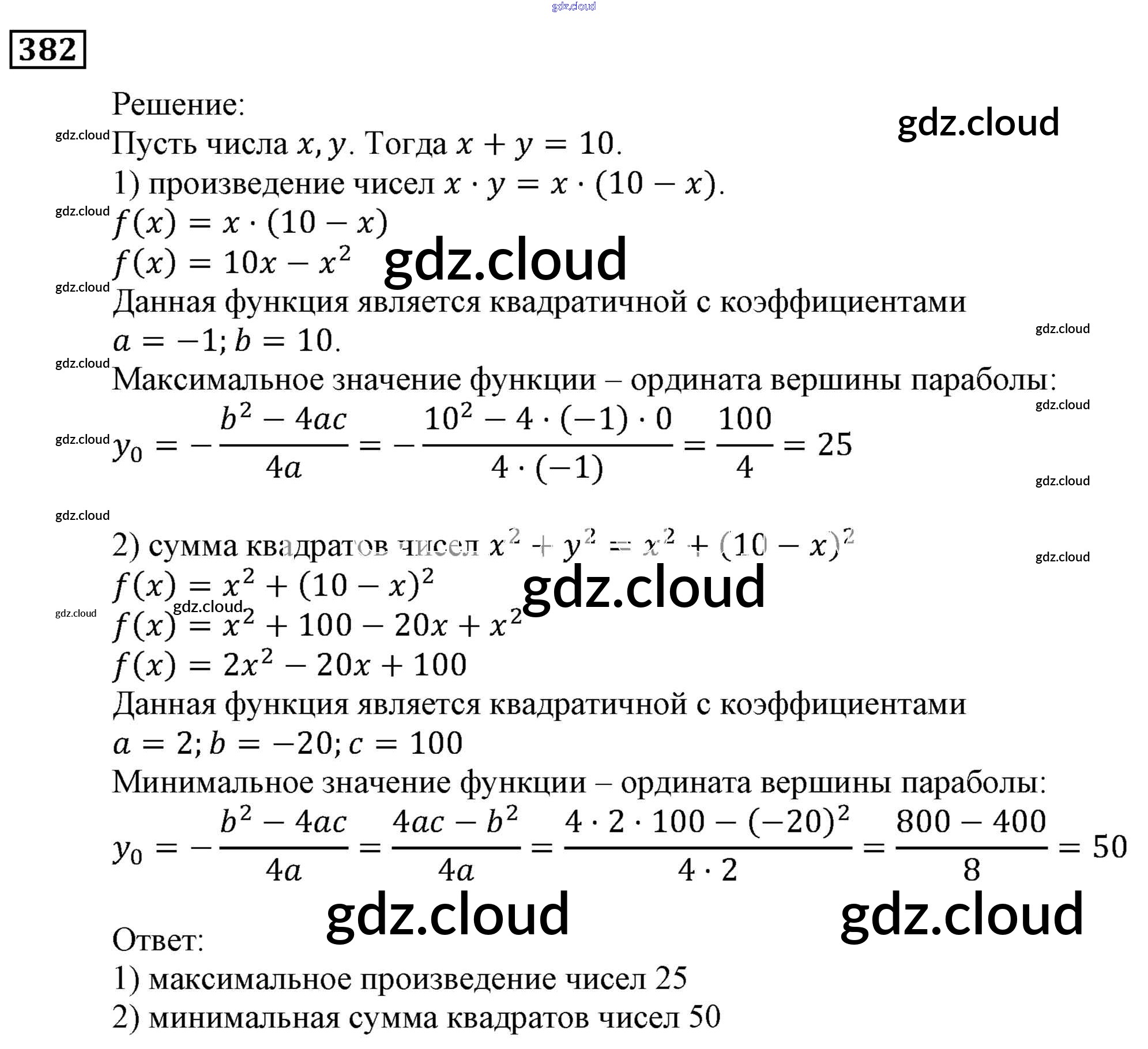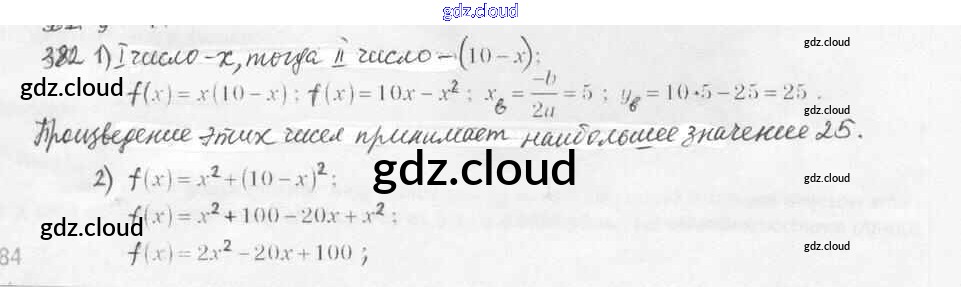 Ответ на задание 382 Учебник Алгебра за 9 (девятый) класс Мерзляк, Полонский, Якир Алгоритм успеха 2016, 2021