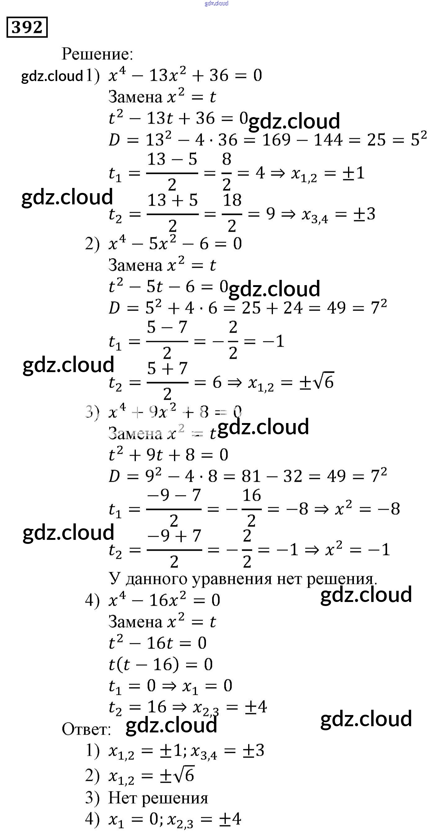 Ответ на задание 392 Учебник Алгебра за 9 (девятый) класс Мерзляк, Полонский, Якир Алгоритм успеха 2016, 2021